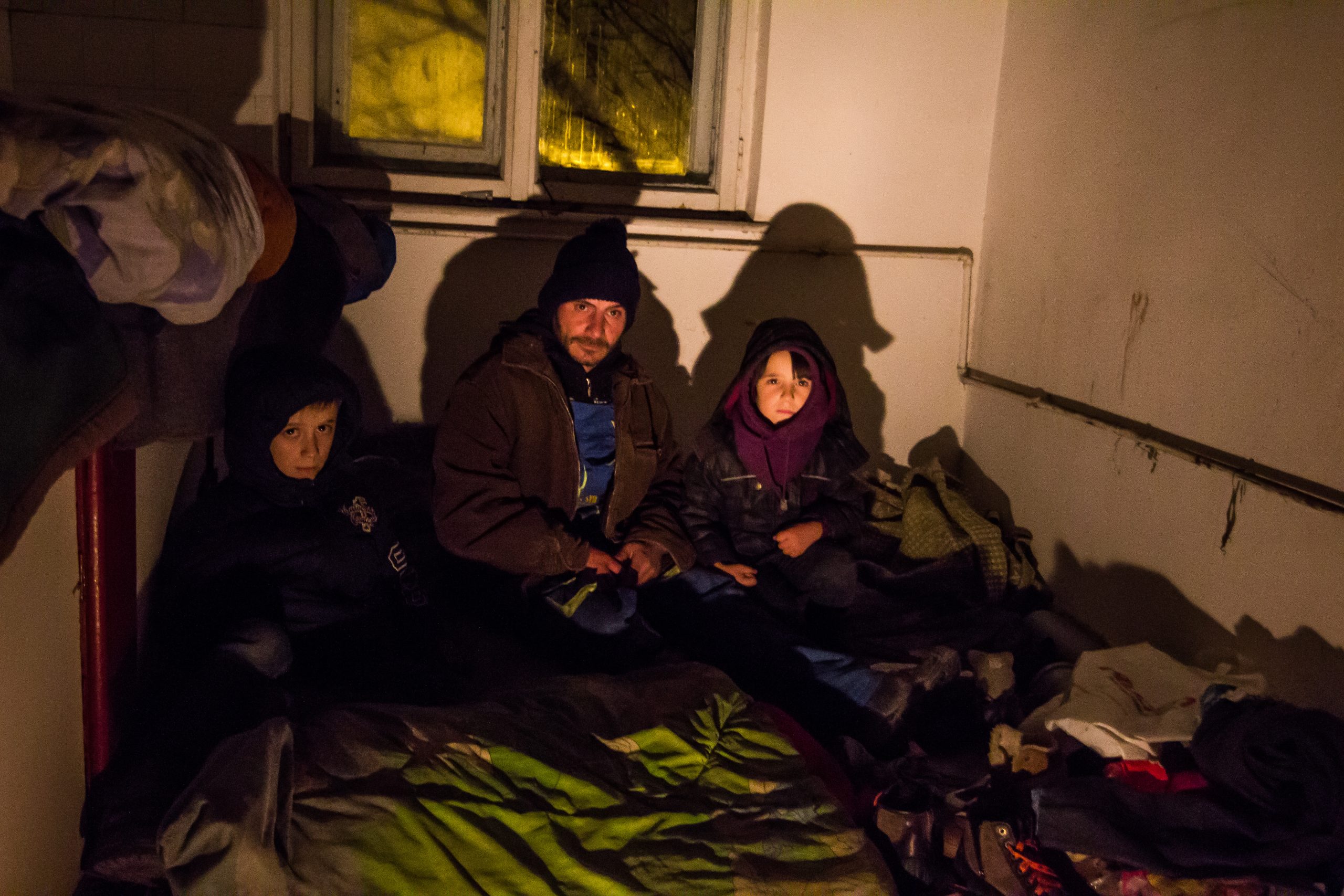 Pentru că nu a mai găsit chirie, Gheorghe Avram a dormit nopţi la rând în scările unor blocuri şi, într-o seară, a intrat într-un bloc dezafectat din oraş. Aici nu există apă, curent sau căldură. A făcut pentru copii pat din paie pe care l-a acoperit cu pături, iar el doarme pe un dulap. Singura sursă de lumină din încăpere este o lanternă, dar nici la asta nu are tot timpul bani să schimbe bateriile. În încăpere nu sunt mai mult de zece grade şi asta într-o zi în care nici afară nu este prea frig. Deşi condiţiile sunt improprii creşterii unor copii, tatăl susține că măcar au un acoperiş deasupra capului. Administratorii blocului le-au cerut să plece, dar au mai fost păsuiţi o săptămână, la intervenţia specialiştilor DGASPC Sibiu.