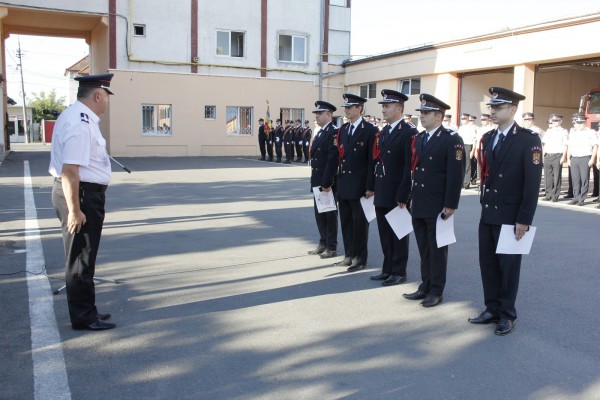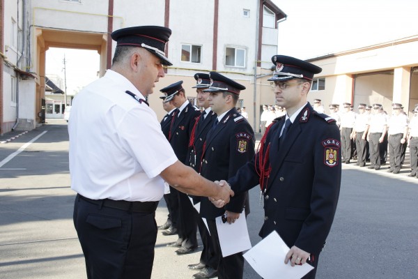 Distincțiile le-au fost înmânate de inspectorul șef ISU, colonelul Cosmin Balcu, cel care a condus ceremonia militară. Acesta le-a urat pompierilor succes în parcurgerea tuturor etapelor specifice carierei militare.