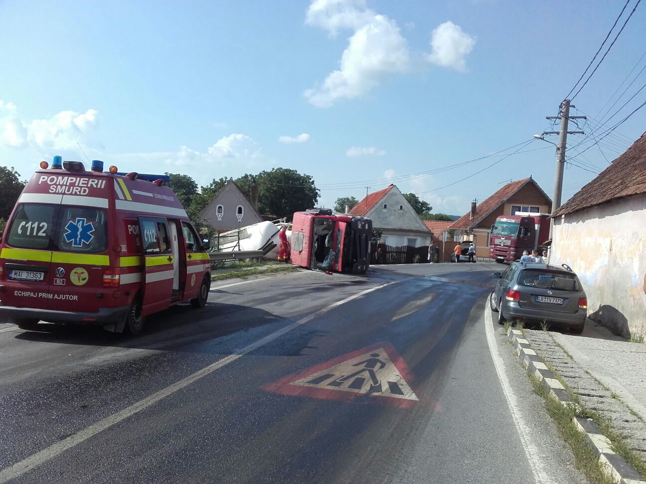 ISU Sibiu a trimis la locul accidentului și o autospecială de intervenție pentru a asigura măsuri de apărare împotriva incendiilor, dat fiind faptul că pe șosea s-a scurs carburant.