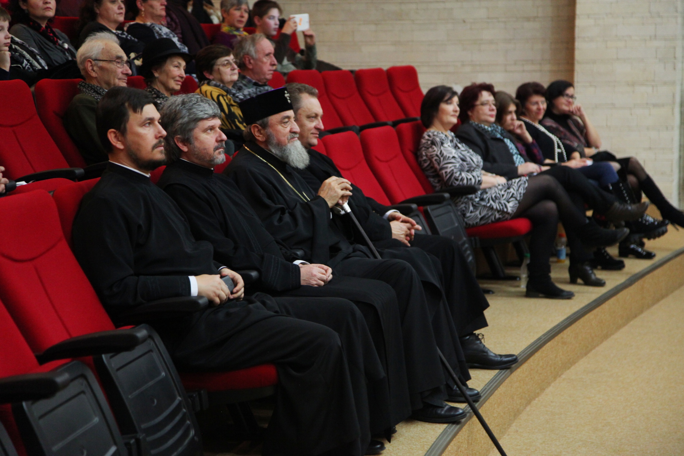 La concertul de colinde organizat în Aula Facultății de Medicină au fost prezenți Înaltpreasfințitul Laurențiu, Arhiepiscopul Sibiului și Mitropolitul Ardealului, consilierul social din cadrul eparhiei, pr. Ciprian Cândea, protopopul de Sibiu, Ioan Coșa, protopopul de Mediaș, Ovidiu Găban, doamna prodecan Gabriela Boța de la Facultatea de Medicină din Sibiu, preoți, cadre didactice, studenți și invitați.