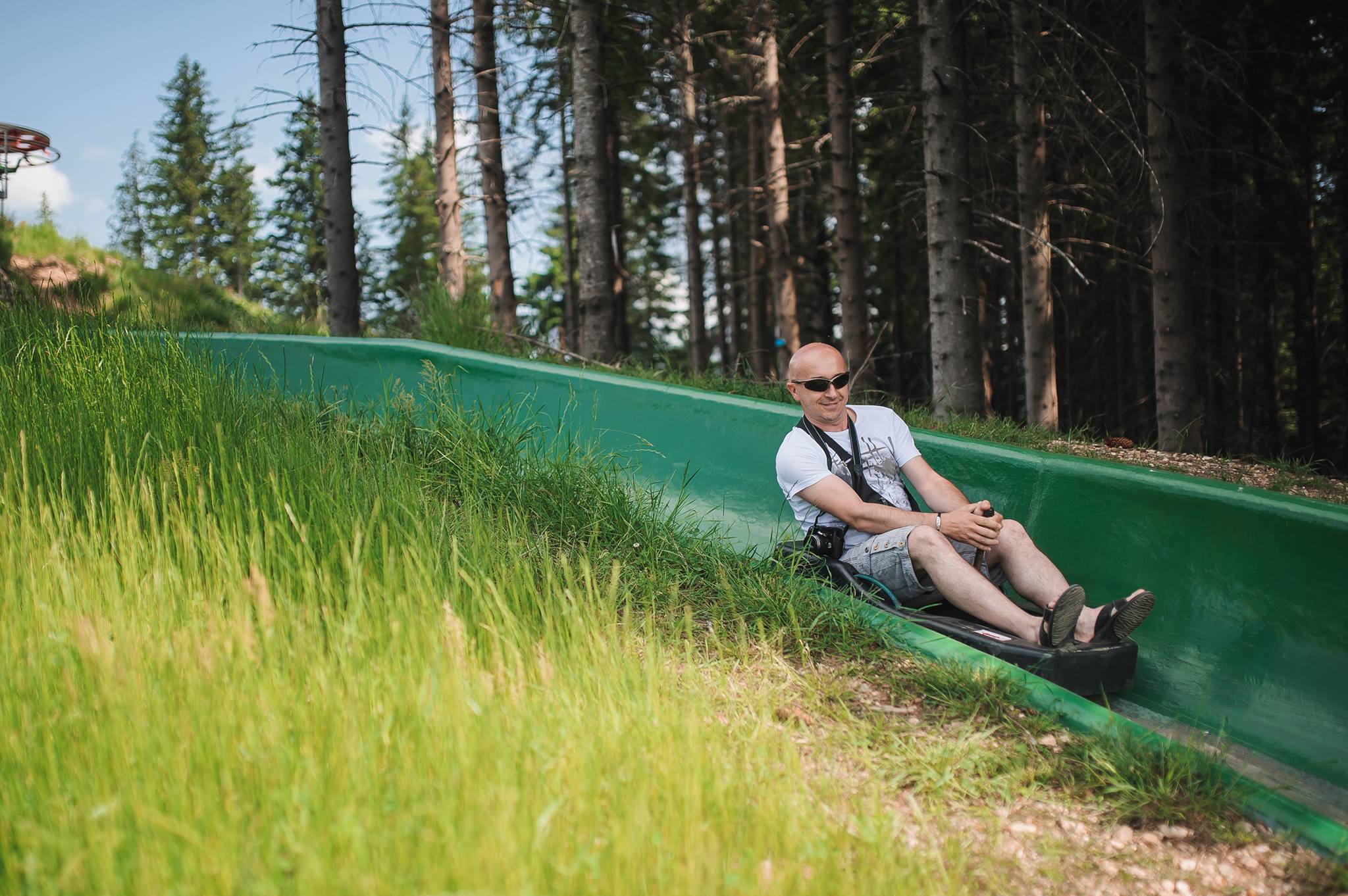 Cea mai inedită dintre distracțiile complexului de vară de la Arena Platoș rămâne sania de vară, principala atracție a parcului de distracții.
