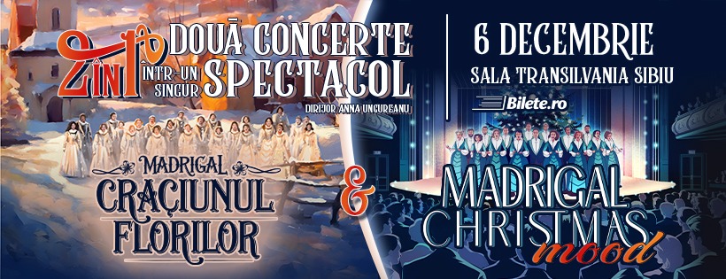 Miracolul Nașterii Mântuitorului este vestit de Corul Madrigal la Sala Transilvania prin cea mai frumoasă muzică de Sărbători, dar și vizual, prin proiecții, elemente de light design și un decor încântător, ce ne amintește de vechi castele medievale. Publicul va avea prilejul să se bucure pe 6 decembrie de cea mai frumoasă serie de colinde românești și internaționale, alese din spectacolele „Crăciunul Florilor” și „Christmas mood”.