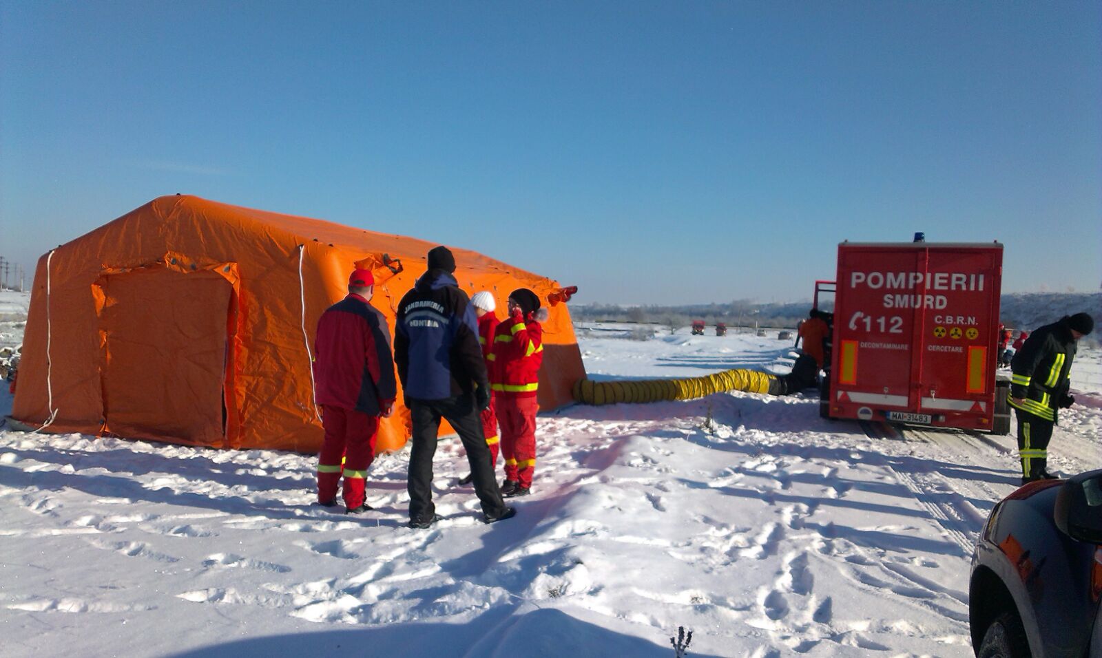 UPDATE Ora 11.50: Al patrulea transport cu turiști de la Bâlea Lac a ajuns la Cârțișoara, iar oamenii au intrat în cortul încălzit pregătit de către ISU. Cel puțin la prima vedere, toți turiștii par a nu avea probleme medicale, dar sunt evaluați de cătr echipaje SMURD aflate la fața locului.