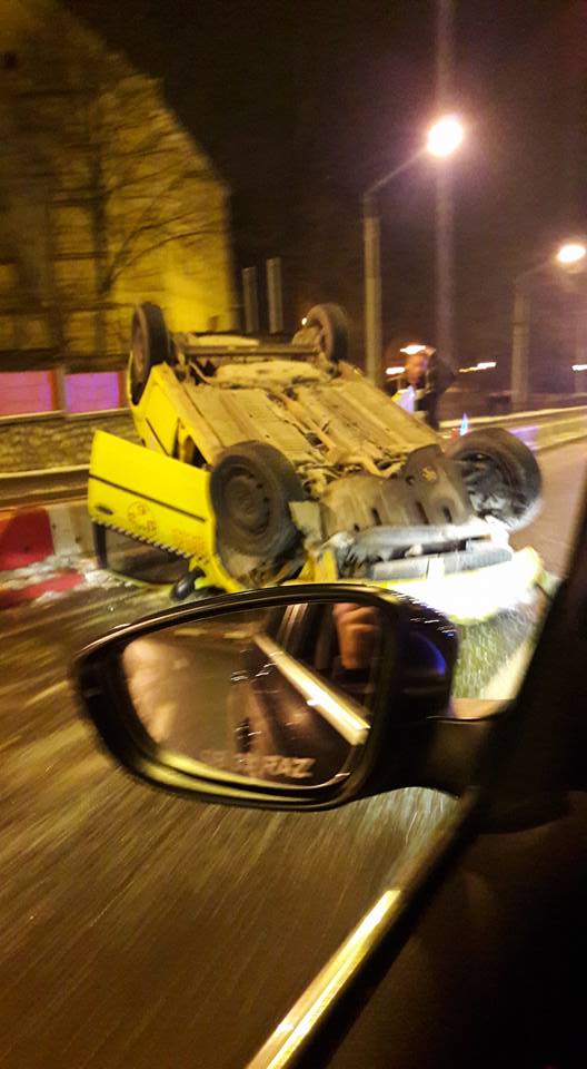 Câteva ore mai târziu, tot pe Şoseaua Alba Iulia, un taxi s-a răsturnat. Acesta cobora de pe strada Andrei Şaguna, a derapat în curbă şi a pierdut controlul volanului. Din fericire nimeni nua fost rănit.