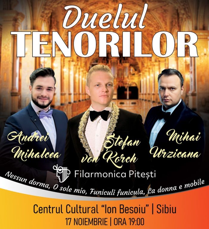 Îndrăgitul tenor Ştefan von Korch invită melomanii din Sibiu la „Duelul Tenorilor,” concert în premieră, ce va însufleți  seara de 17 noiembrie cu canzonete, piese pop-opera şi arii celebre. Evenimentul va fi găzduit la Centrul Cultural „Ion Besoiu” iar alături de tenorul Ştefan von Korch – solist-gazdă, vor fi alte două voci lirice de excepţie: tenorul Andrei Mihalcea şi tenorul Mihai Urzicana.