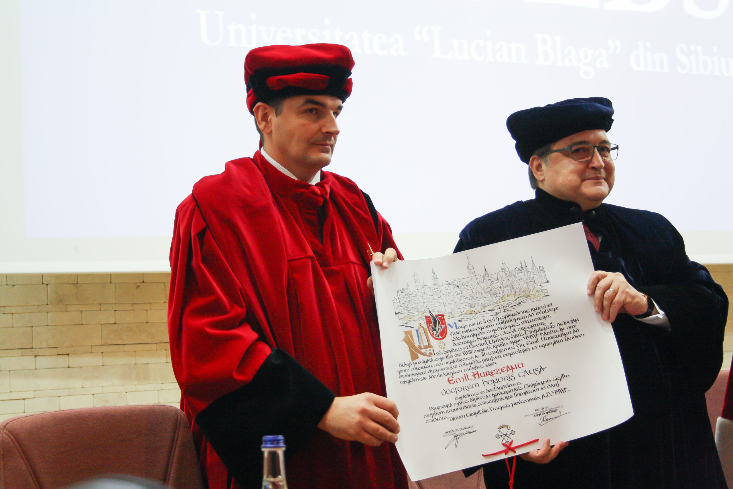 Jurnalistul și omul de cultură Emil Hurezeanu, ambasador al Sibiului din anul 2014, a primit titlul de Doctor Honoris Causa al ULBS, în cadrul unei ceremonii susținută la Facultatea de Medicină.