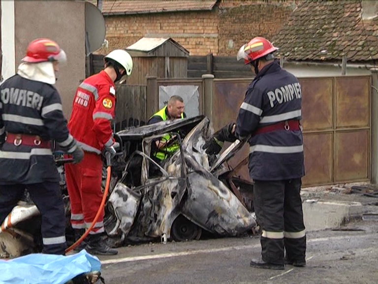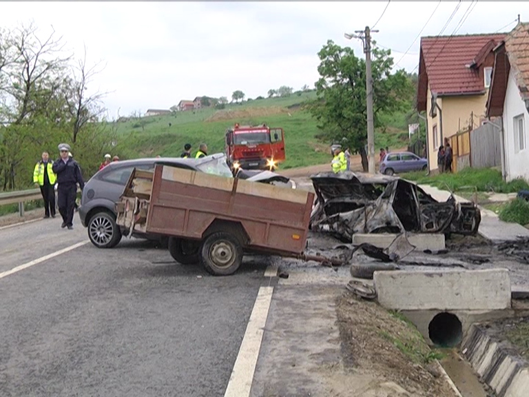 Cei patru care se aflau în mașina care a luat foc sunt din localitatea Mag și mergeau la un târg ca să cumpere animale.