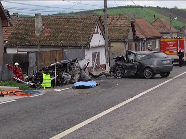 Accident cumplit pe Drumul Național 14, la ieșirea din localitatea Șura Mare. Două mașini s-au ciocnit iar în urma impactului, una din ele a fost proiectată în șanț și a luat foc. Două persoane au murit iar alte patru au fost rănte, printer care și un copil de doar 8 ani care este în stare gravă.