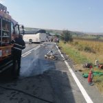 FOTO Accident între un autocar şi un autoturism, pe DN 1