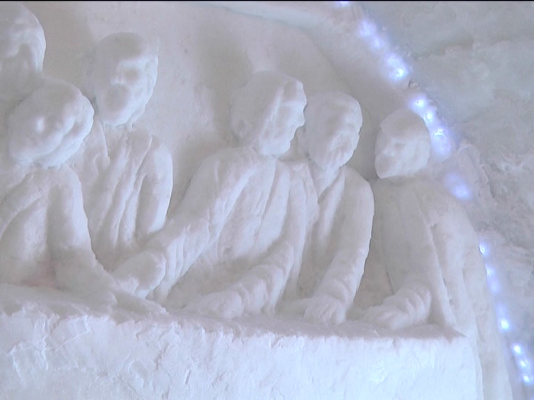 Lucrările la Biserica de gheață au durat aproximativ trei săptămi, timp în care a fost ridicată construcția din blocuri de gheață scoase din Lacul Bâlea și au fost făcute sculpturile care o decorează. „Pe peretele din fața altarului este sculptura Cina cea de Taină, o lucrare care s-a făcut cel mai greu. S-a lucrat aceasta aproximativ patru zile cu gheață, zăpadă și apă.” ne-a spus unul din muncitorii care au lucrat la construcția Bisericii de gheață