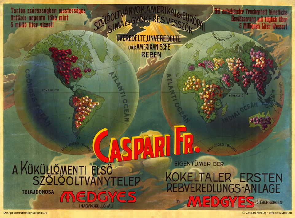 Friedrich Caspari nu era doar un proprietar excelent de podgorie şi de şcoală de viță, ci era şi un bun comerciant cu un simţ aparte pentru reclamă şi strategii de vânzare. El a poziţionat faimosul panou publicitar cu globul pământesc pentru vie în majoritatea gărilor monarhiei de atunci şi reclamele din toate revistele de specialitate recomandau viile Caspari; în plus distribuia în fiecare an mii de cataloage cu preţurile menționate în toate zonele de vie din Europa. Astfel, nu era de mirare că viile sale au devenit cunoscute mult în afara zonei Târnavei şi livra cu vagoanele din viile sale către Austria, Ungaria, Oltenia, chiar şi în Rusia, aproape până la graniţa cu Asia. Nu ar fi existat metropola vinului Mediaş fără Friedrich Caspari, pentru că prin el i s-a dăruit regiunii viticole de pe valea Târnavei o personalitate excelentă şi un spirit de pionier care au avut un impact extraordinar asupra refacerii podgoriilor distruse, notează site-ul www.caspari.ro.