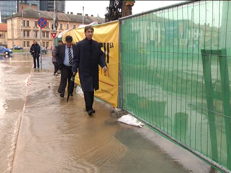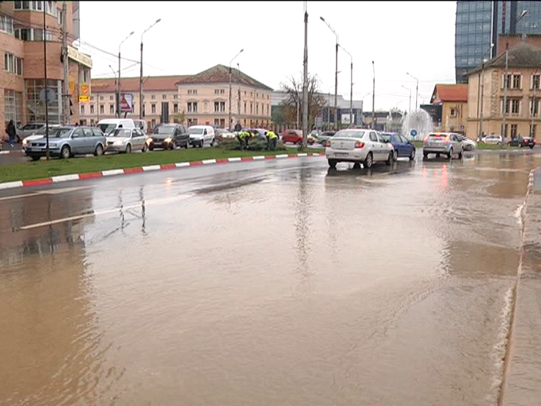 Totul s-a întâmplat joi după amiază, muncitorii care lucrau pe șantierul din intersecția Bulevardului Mihai Viteazu cu Calea Dumbrăvii au atins din neatenție cu utilajele conducta de apă. Unul dintre muncitori ne-a spus că ei știau că în zona în care forau pentru fundația unei construcții se află o conductă dezafectată. Nu a fost așa iar apa a țâșnit imediat pe șosea. Conducerea firmei care face execută lucrările a anunțat Societatea Apă Canal iar o echipă a mers la fața locului și a remediat pentru moment defecțiunea astfel încât să nu mai curgă apă.