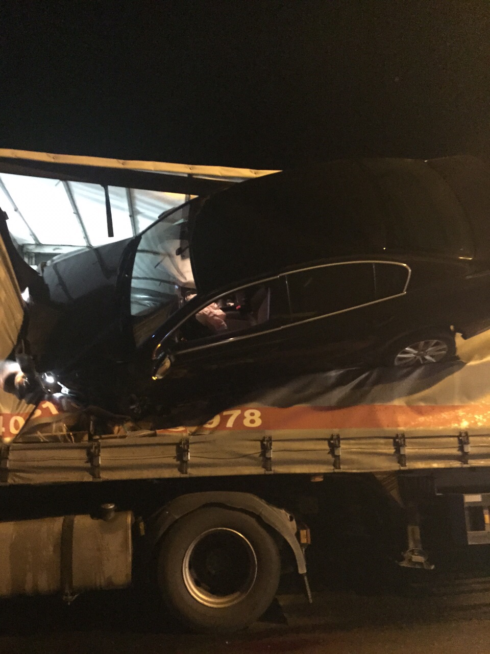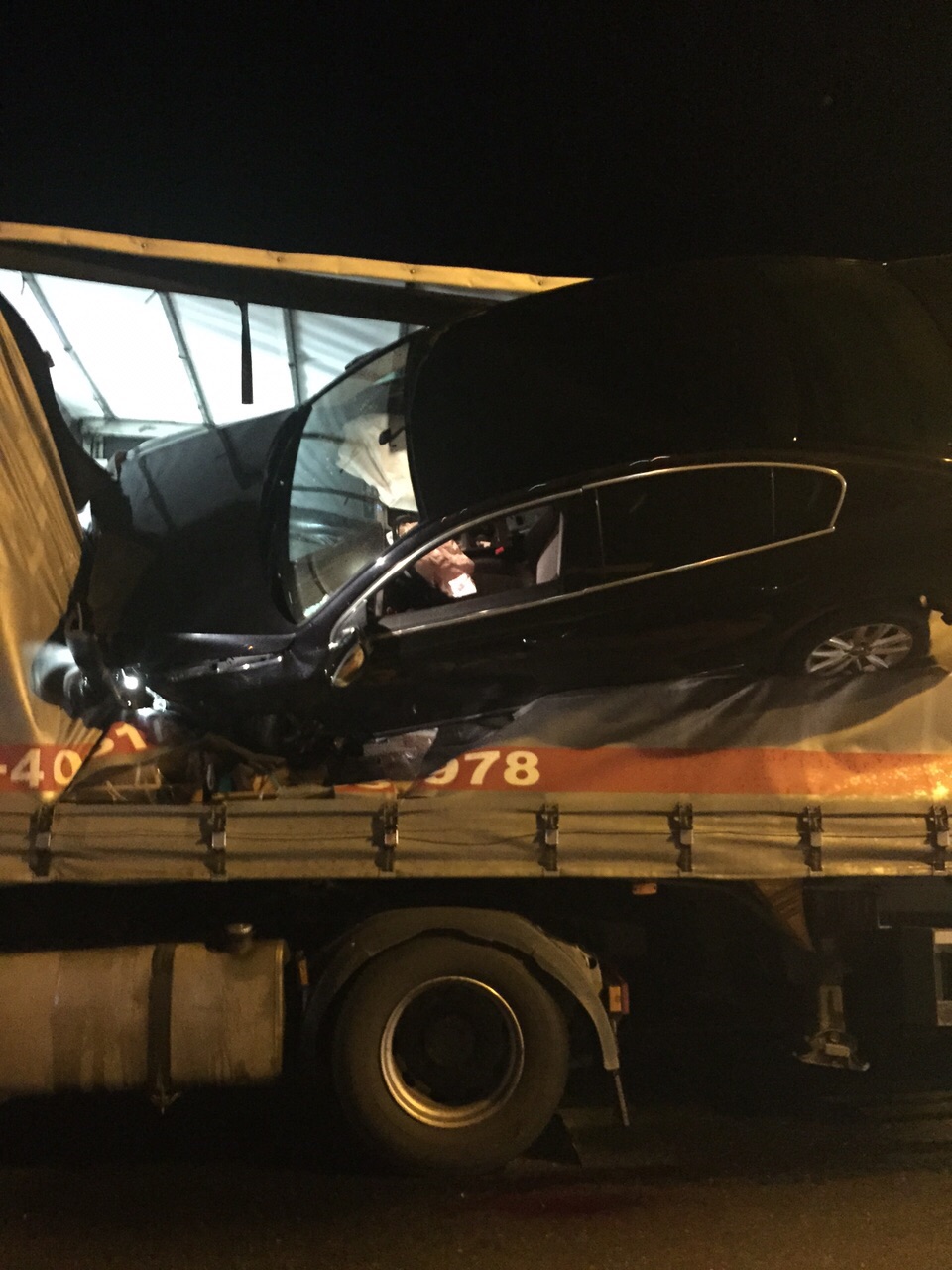 „Accidentul a a vut loc pe DN1, în afara localității Veștem, pe fondul alcoolului și vitezei. Un autoturism a intrat în coliziune cu un TIR care circula în același sens. Șoferul autoturismului a sărit peste sensul giratoriu și s-a oprit în prelata autotrenului.” a declarat Elena Welter, purtător de cuvânt al IPJ Sibiu