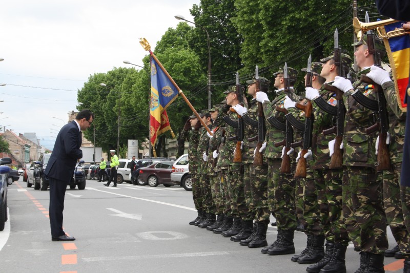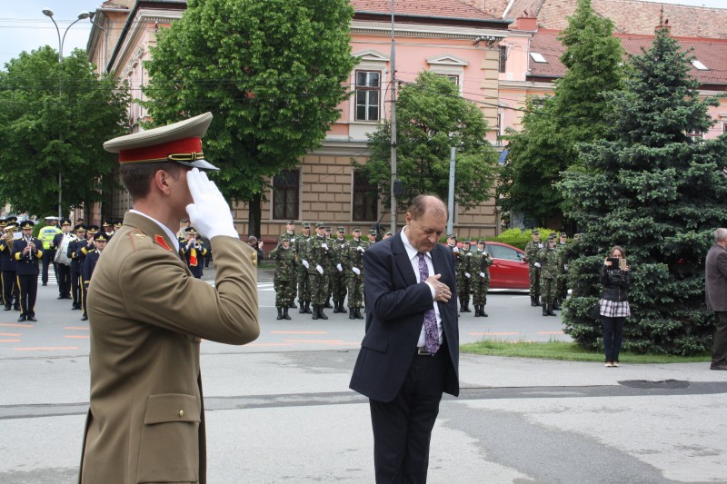 „Dincolo de semnificația zilei de 9 mai, am organizat în holul Primăriei Sibiu o expoziție foto-documentară <<170 de ani de învățământ militar românesc>>, în concordanță cu cei 170 de ani de la înființarea primei școli de ofițeri din România”, a spus generalul.