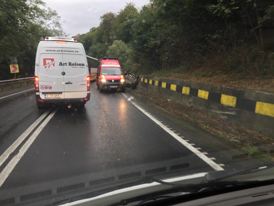 Accident rutier, luni după amiaza, pe DN 1, la Hula Bradului. Pe fondul vitezei neadaptate la condițiile de trafic, o conducătoare auto în vârstă de 36 de ani, care circula spre Avrig a pierdut controlul direcției de deplasare și s-a răsturnat în afara șoselei. Femeia, care era singură în autoturism, a fost rănită ușor în urma evenimentului și a fost transportată la spital. Traficul se desfășoară cu dificultate pe perioada desfășurăii cercetării la fața locului a polițiștilor rutieri.