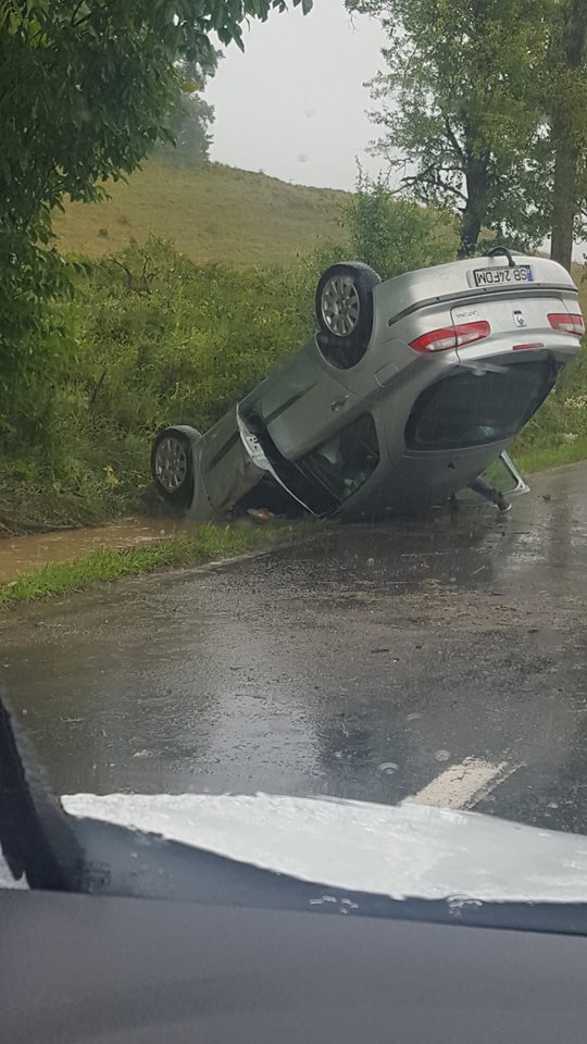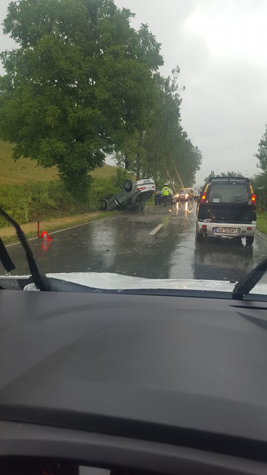 O femeie de 38 de ani din Agnita s-a răsturnat cu mașina într-un șanț, pe drumul dintre Hosman și Fofeldea. Șoferița circula cu viteză prea mare pe timp de ploaie și a pierdut controlul volanului. Din fericire, femeia nu a fost rănită.