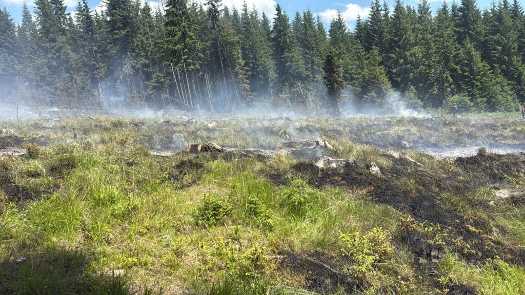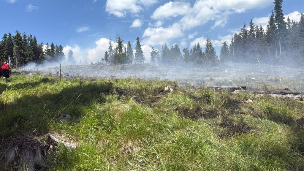 UPDATE 9 IULIE: „În cursul serii trecute, pompierii militari și voluntari s-au retras de la fața locului, întrucât din cauza condițiilor meteorologice (ploaie și vijelie), nu se mai impunea intervenție în zona manifestării incendiului.