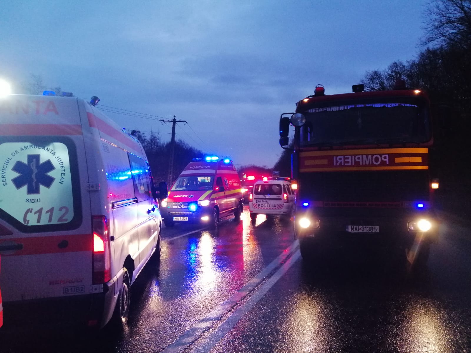 Două persoane din microbuz, șoferul de 73 de ani și un pasager de 44 de ani, ambii din Simeria, au murit în urma impactului. Acestea au fost scoase din microbuz de echipajul de la Descarcerare. Șoferul autotrenuluiîn vârstă de 56 de ani, a primit îngrijiri medicale la locul evenimentului și a refuzat transportul la spital. La fața locului sunt prezente patru echipaje SMURD, o autospecială de Descarcerare și un echipaj al Ambulanței Sibiu.