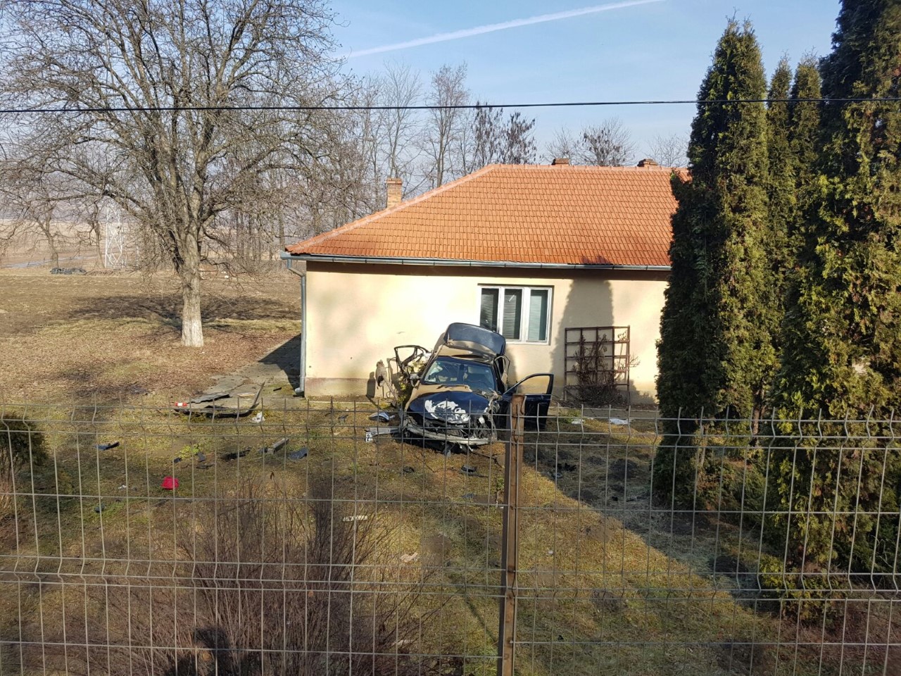 FOTO – După accident, o mașină a „zburat” în curtea Ocolului Silvic
