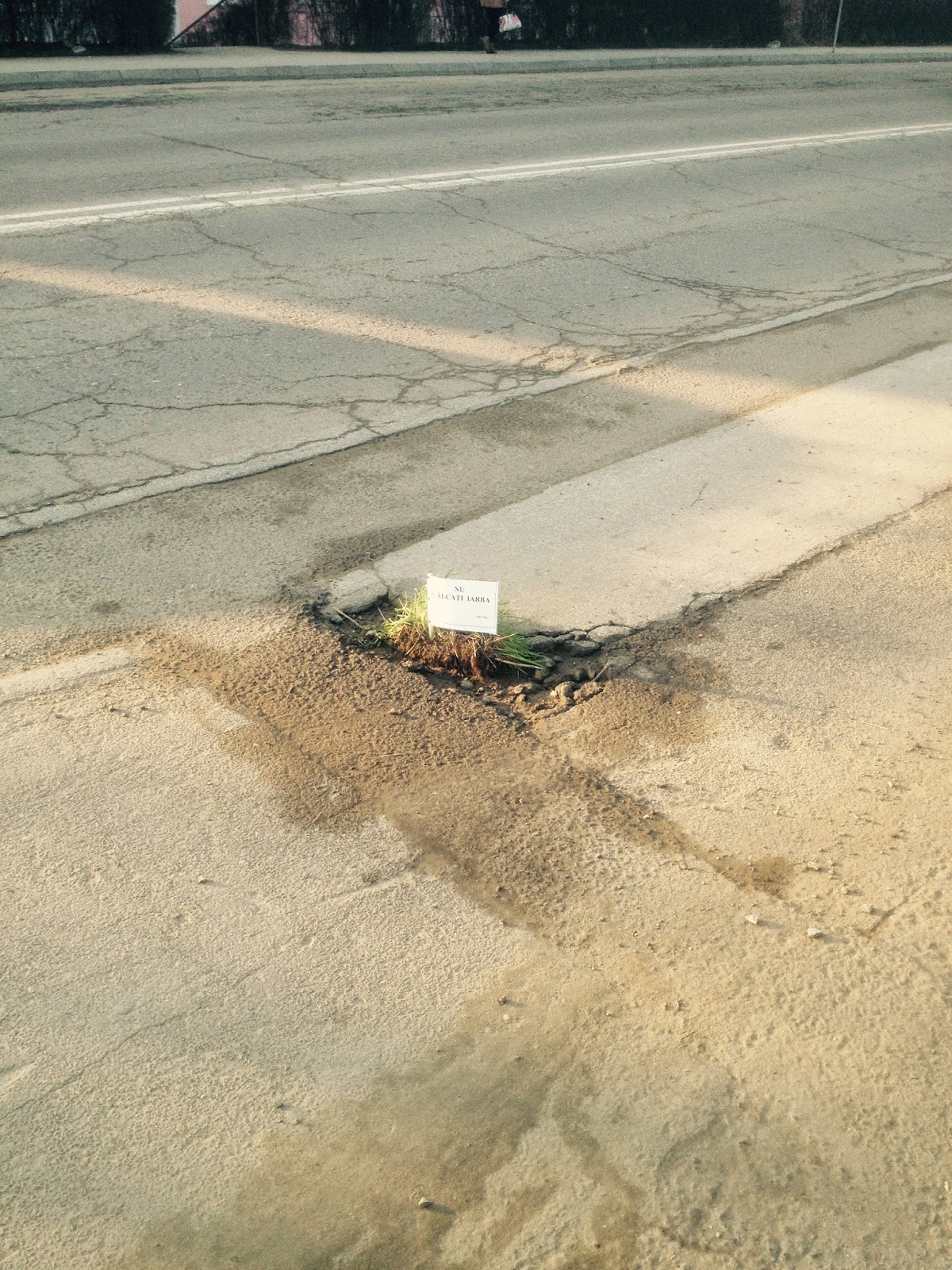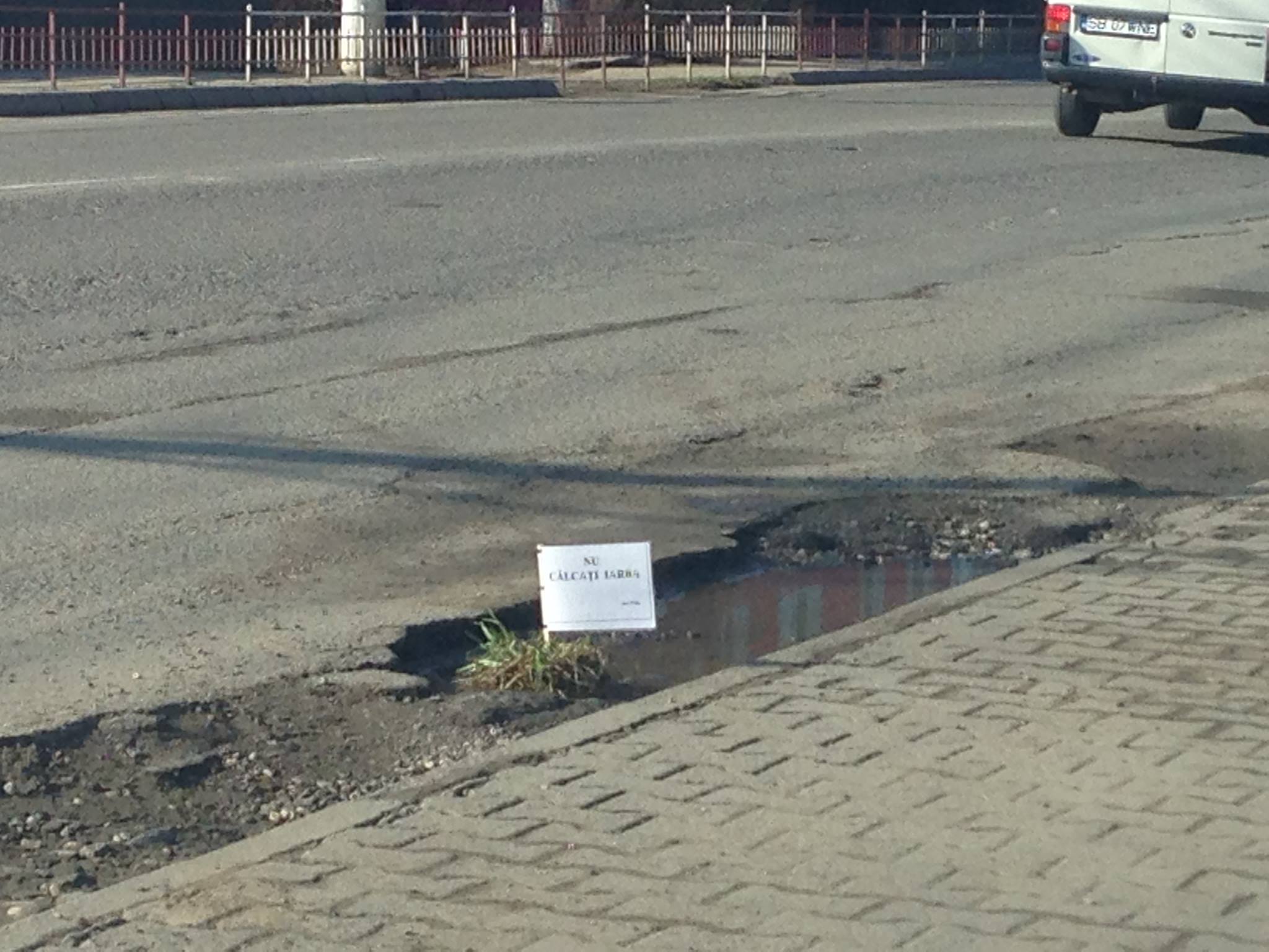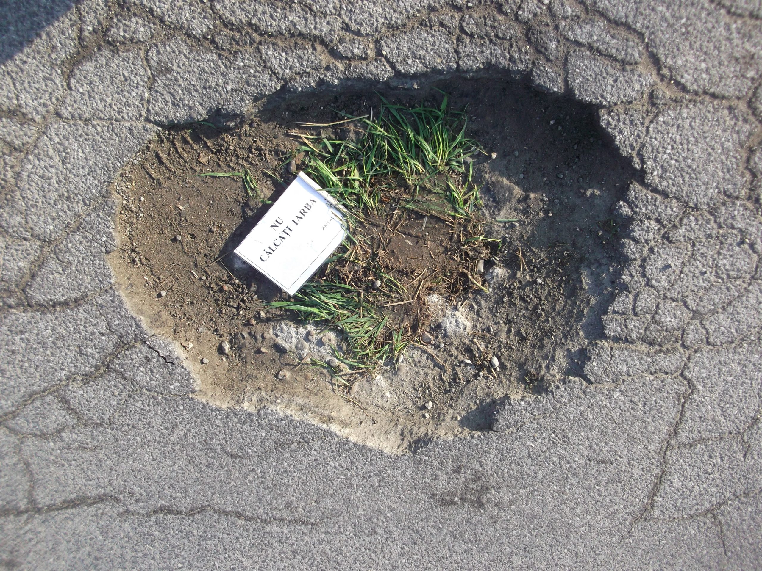 Nu cu material corespunzător, ci cu iarbă și pământ. Așa au fost astupate majoritatea gropilor din principalele artere ale Mediașului, după care au fost lăsate deasupra şi mici pancarte intitulate „Nu călcaţi iarba”.