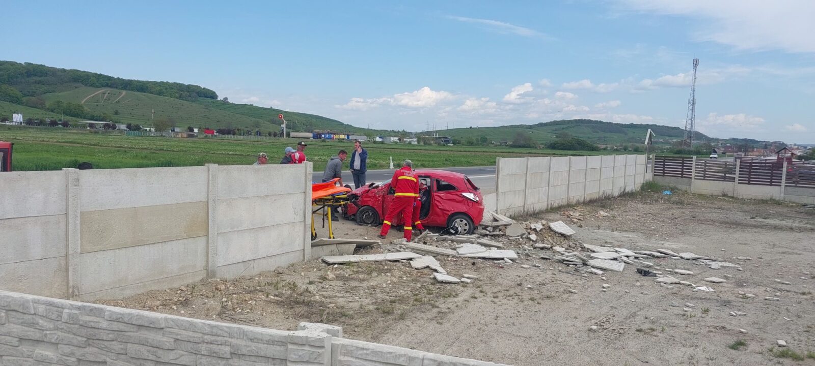 Un echipaj SMURD a intervenit de urgență și a acordat primele îngrijiri victimei, care prezenta un traumatism cranian.