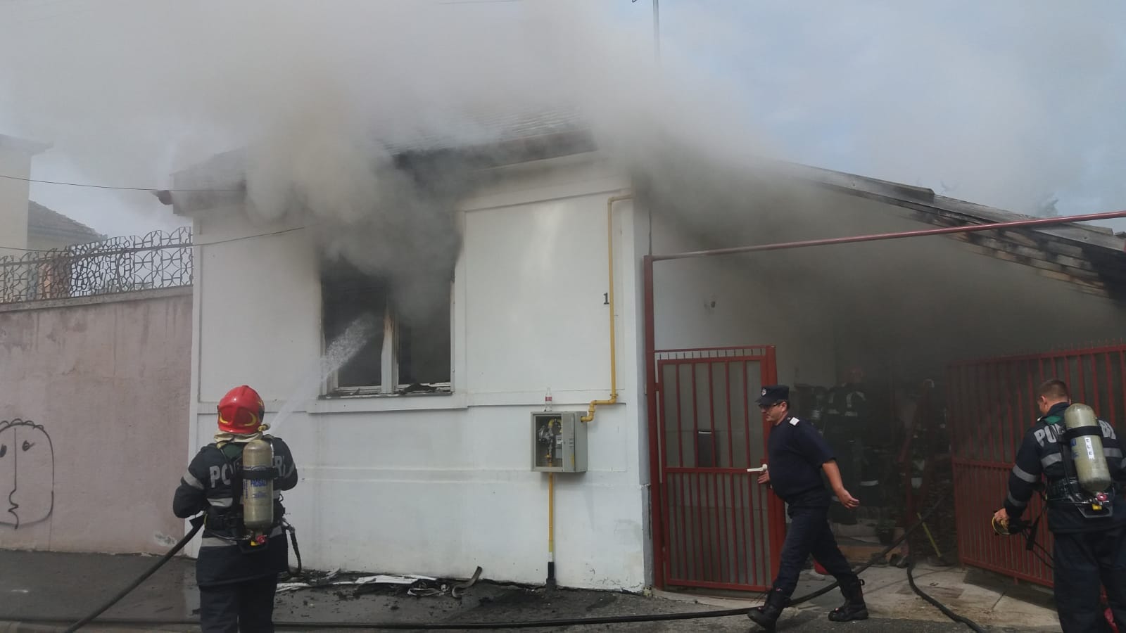 Un vecin a alertat autoritățile, acesta a sunat la 112 după ce a văzut că iese fum dens pe geamurile casei. Pompierii au ajuns la fața locului și verifică zona, încearcă să izoleze focul, astfel încât acesta să nu se extindă.
