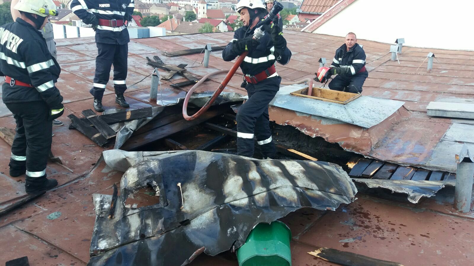 FOTO: Mansarda unui bloc de pe Şcoala de Inot a luat foc