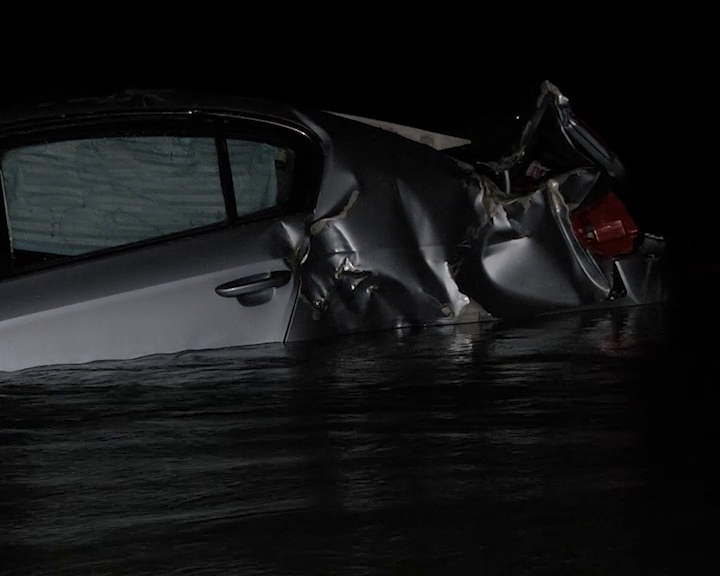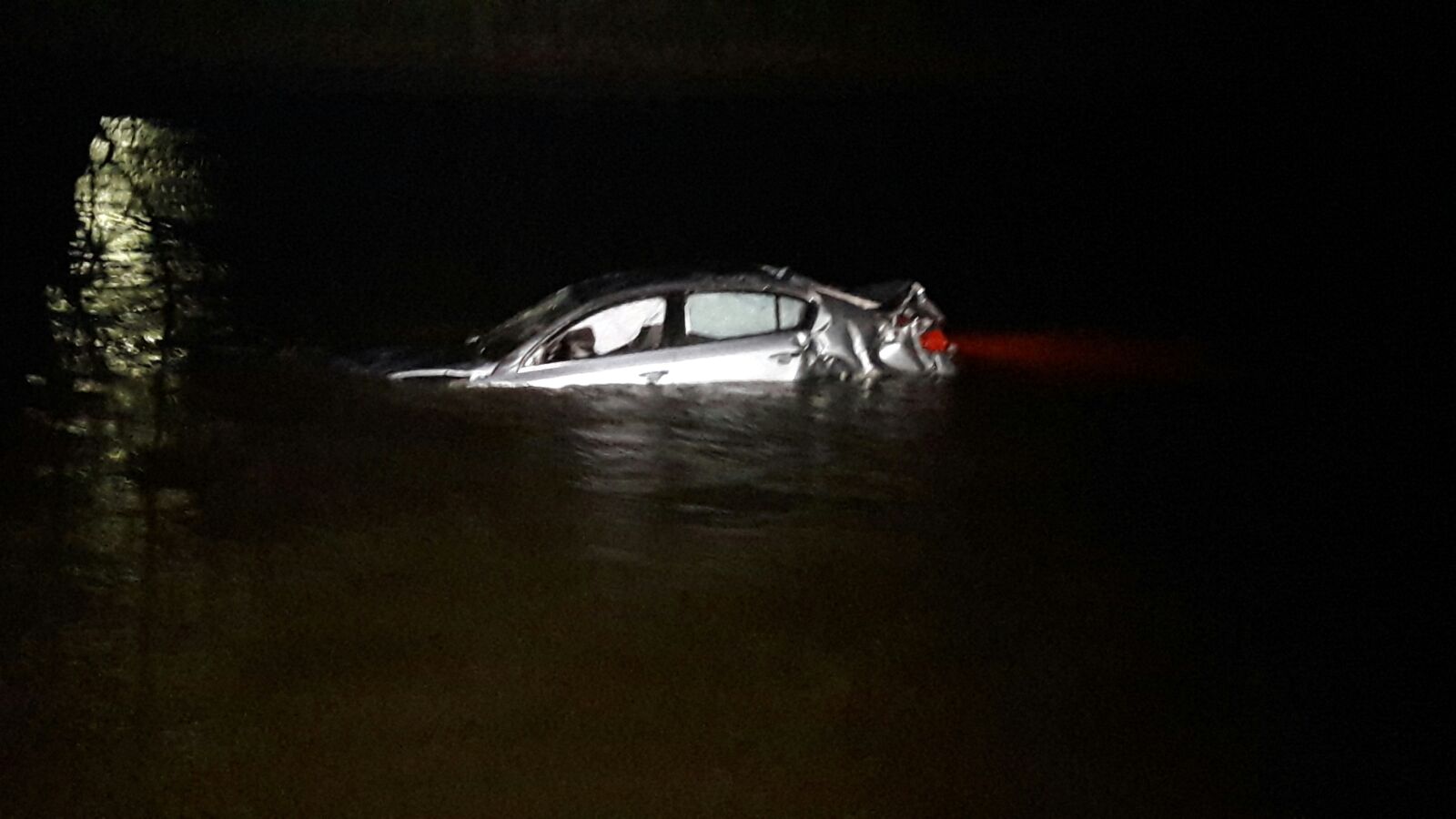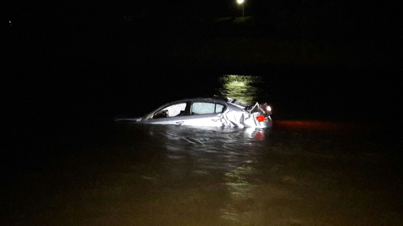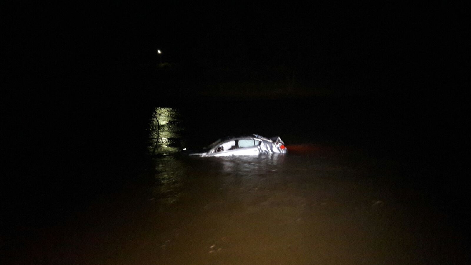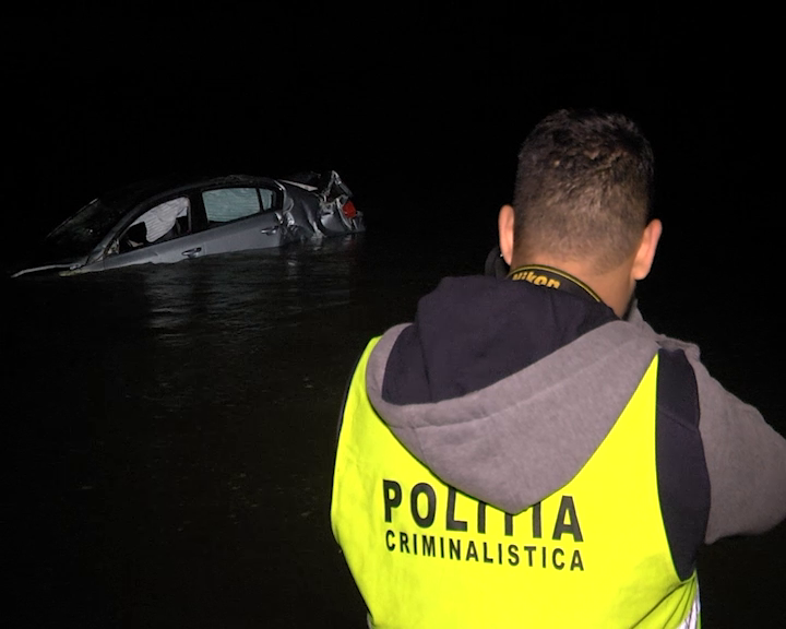 FOTO: Masină căzută în Olt; două tinere au iesit pe plafonul autoturismului ca să se salveze