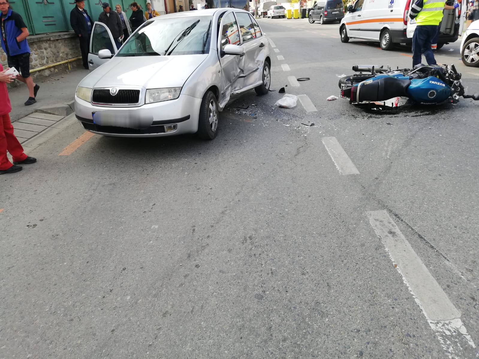 FOTO: Motociclist rănit grav după ce a fost lovit de o mașină