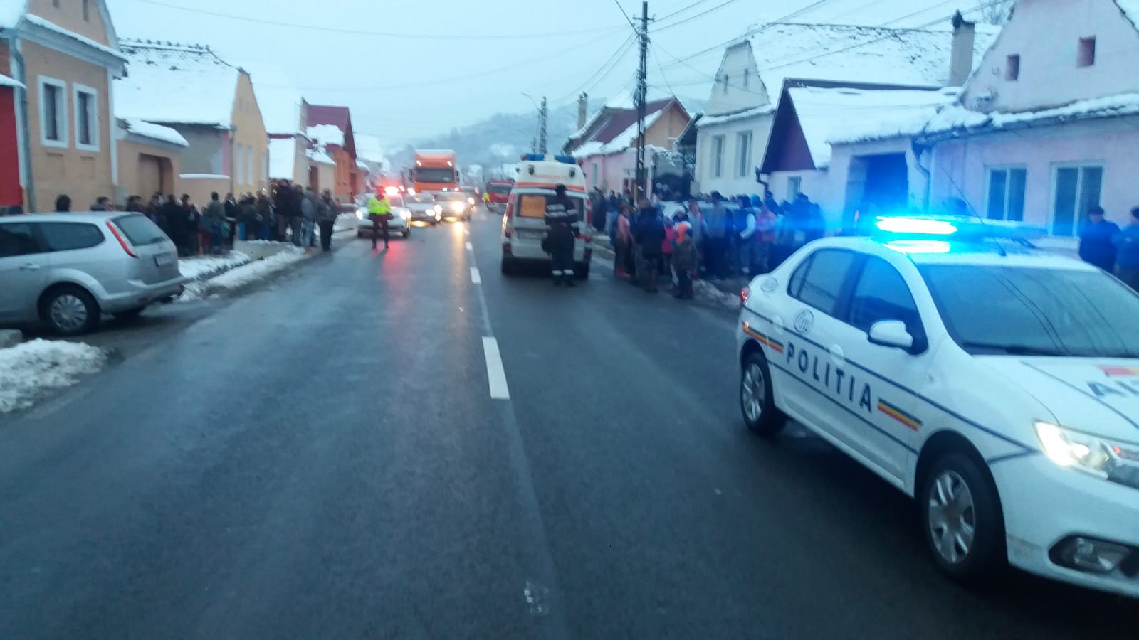 „Pe Drumul Național 14, la intrarea în Șaroșu pe Târnave dinspre Mediaș, doi copii care traversau neregulamentar au fost loviți de un autoturism condus regulamentar spre Sighișoara de către un bărbat de 45 de ani”, spune Elena Welter, purtătorul de cuvânt al IPJ Sibiu.