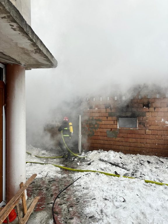 „La sosirea forțelor incendiul se manifestă generalizat la nivelul acoperișului, existând pericol de propagare la casa din imediată vecinătate.