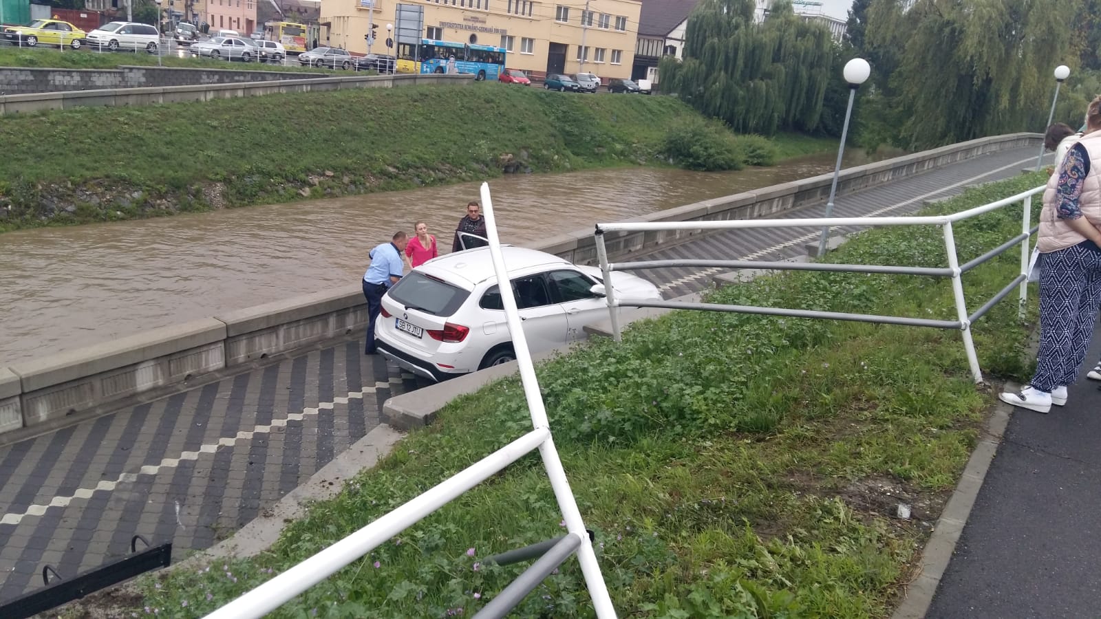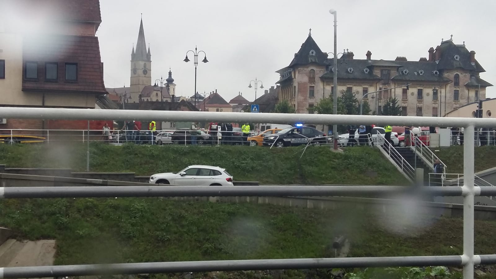 O femeie a fost la un pas să cadă cu mașina în râul Cibin. Șoferița a pierdut controlul volanului, a rupt balustrada de protecție din partea stângă și a plonjat până pe aleea pietonală de pe marginea râului. S-a întâmplat în apropiere de podul de lângă Piața Cibin.