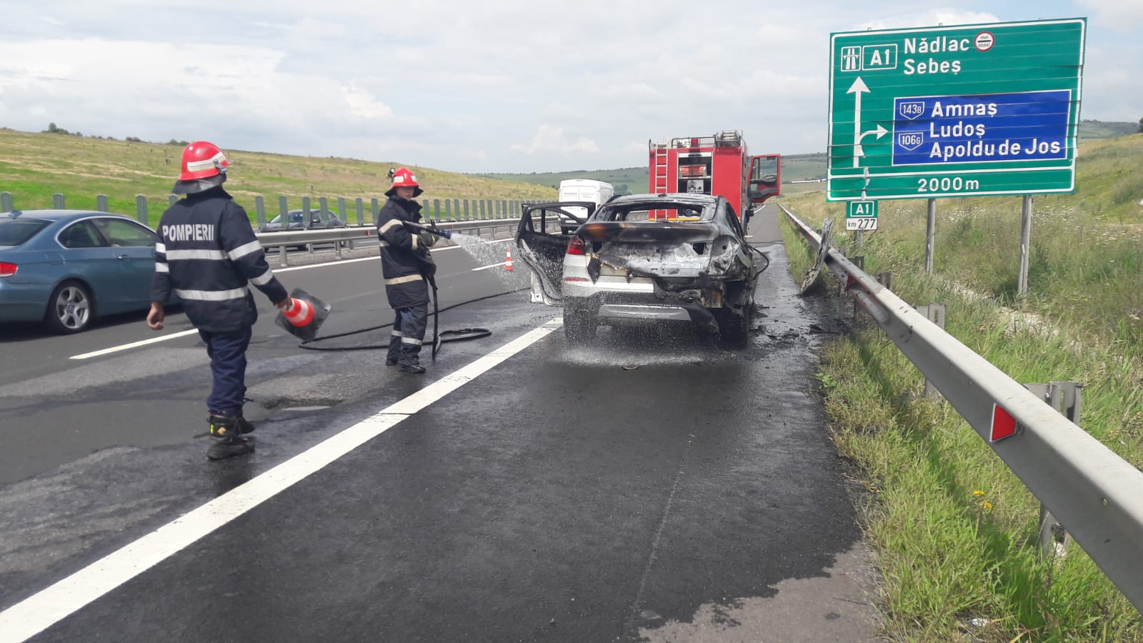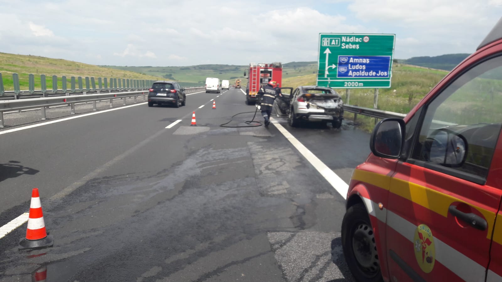 O mașină a luat foc pe autostradă, îna propiere de localitatea Săliște. Pompierii au intervenit de urgență și au reușit să stingă focul iar din fericire, nu sunt victime. Se fac acum verfiicări pentru a se stabli din ce cauză a izbucnit incendiul.