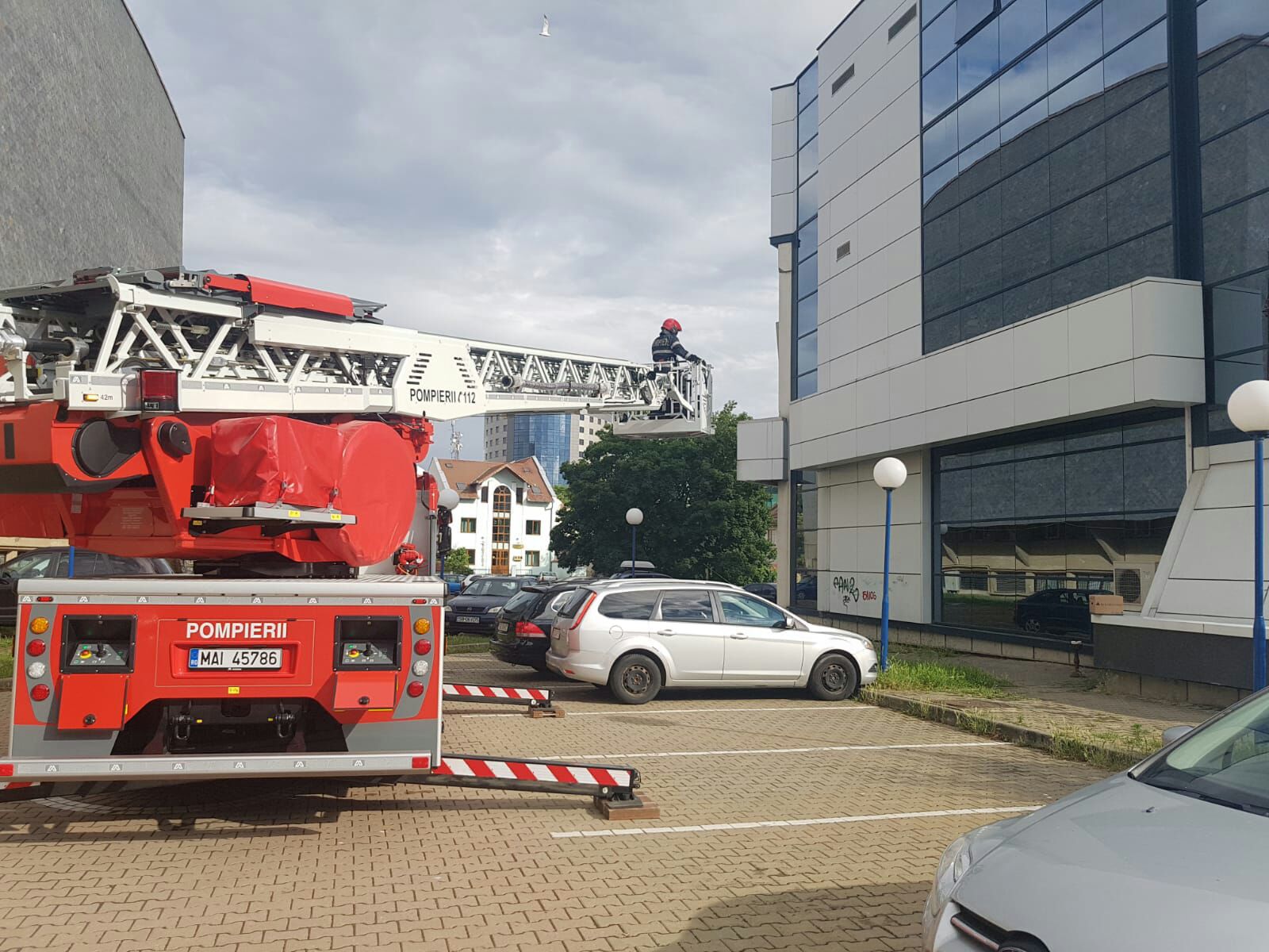 Un pescăruș rănit a fost salvat de pompieri de pe clădirea unei bănci, din centrul orașului. Pompierii au intervenit de urgență cu o autoscară și au reușit să coboare pasărea.