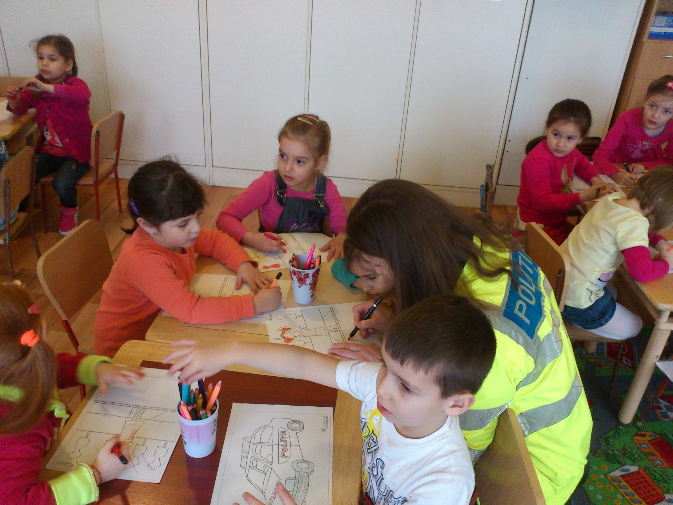 Oamenii legii au participat astăzi la o lecţie deschisă cu tematică rutieră la Grădiniţa nr. 33 din municipiul Sibiu, 7 grupe de preşcolari, mari şi mici, învăţând prin intermediul jocurilor şi al planşelor de desen principalele reguli şi semne de circulaţie rutieră.
