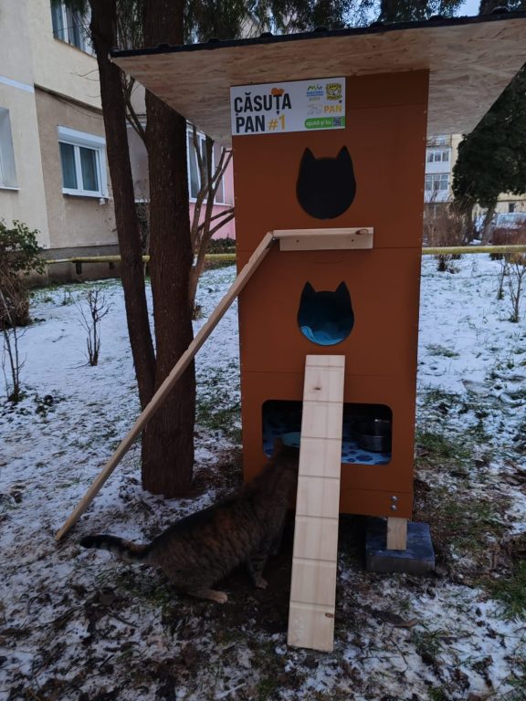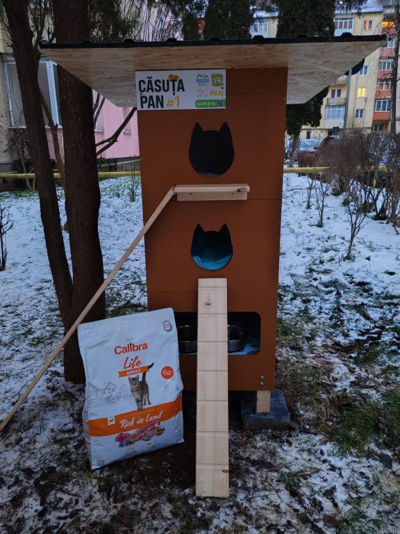 Asociația PAN-Protecția Animalelor și a Naturii a realizat și amplasat prima căsuță PAN pentru pisicile comunitare.