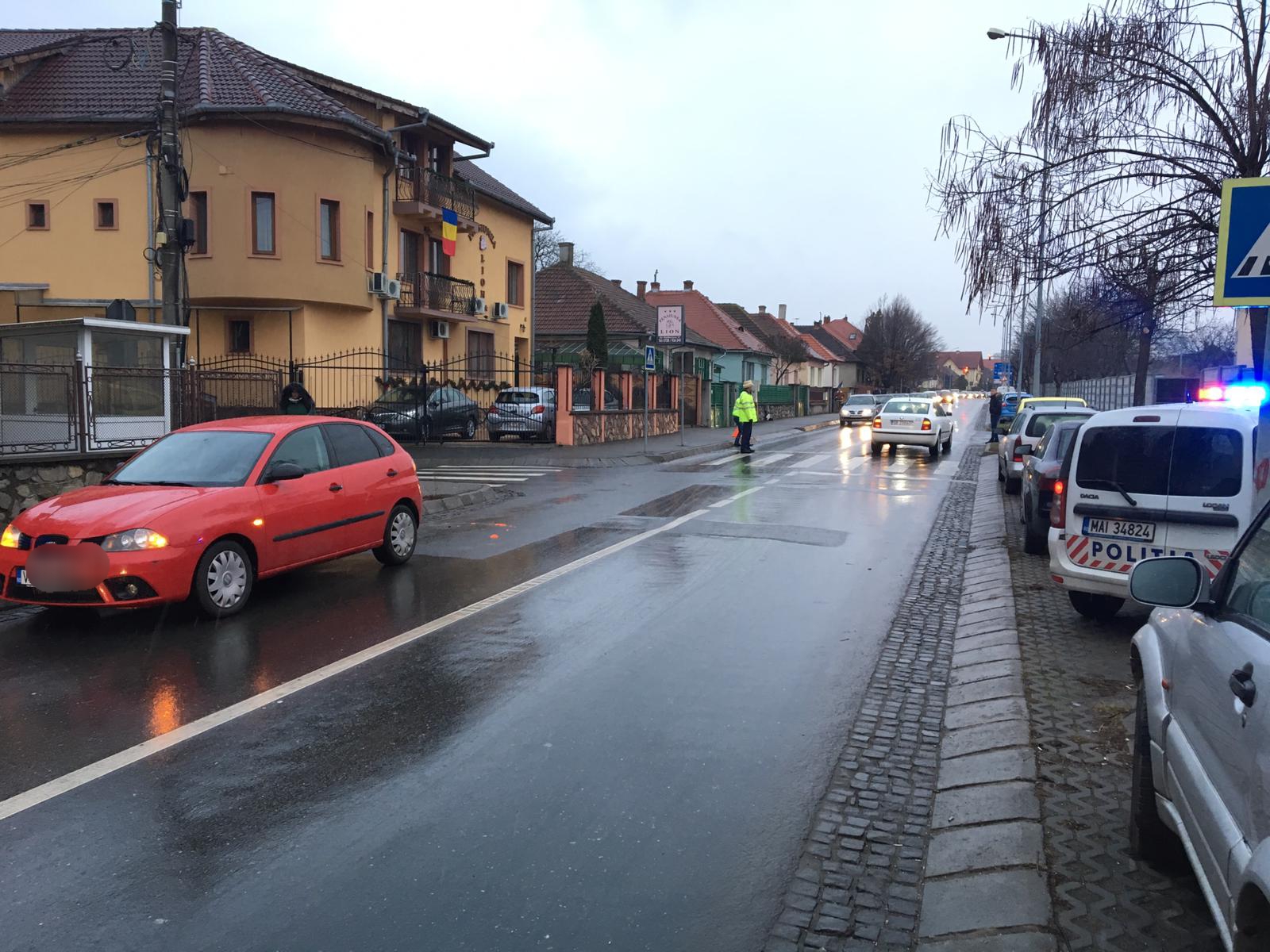 Accident rutier, marți dimineața, în municipiul Sibiu, pe strada Moldoveanu. O sibiancă în vârstă de 62 de ani a fost lovită pe trecerea de pietoni de o mașină și a fost proiectată pe autoturismul oprit pe sensul opus pentru a acorda prioritate.