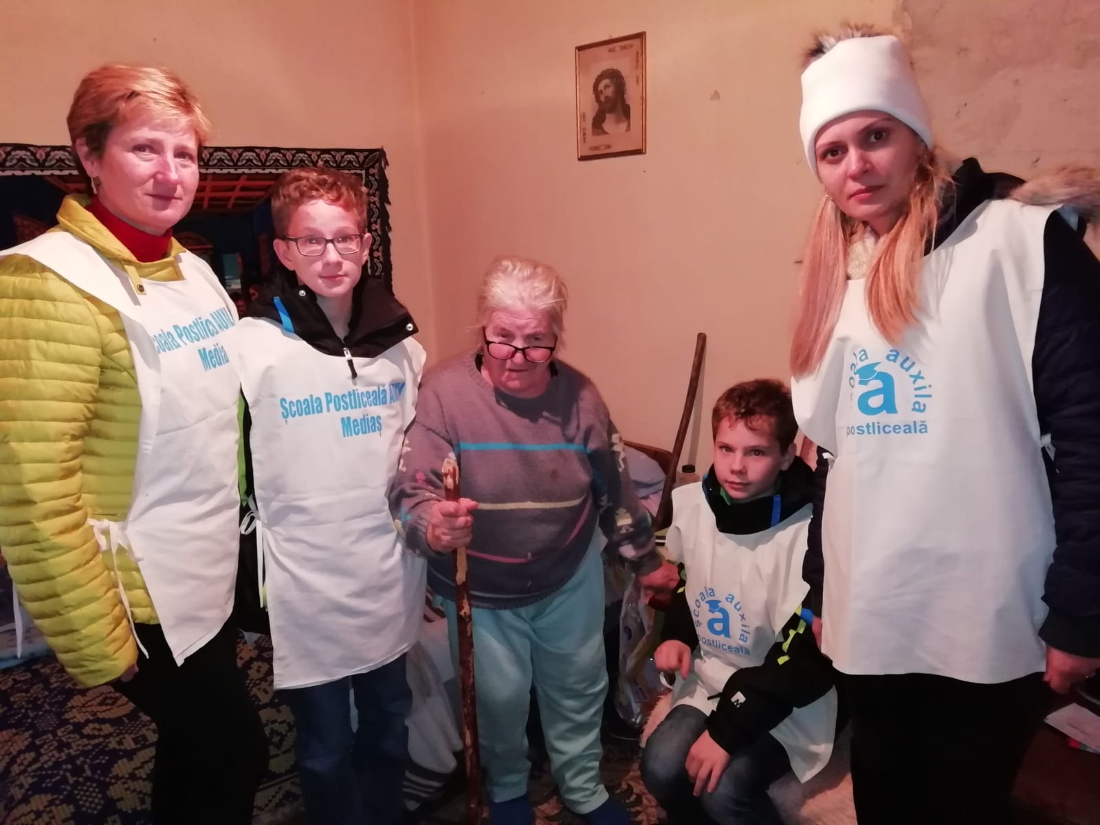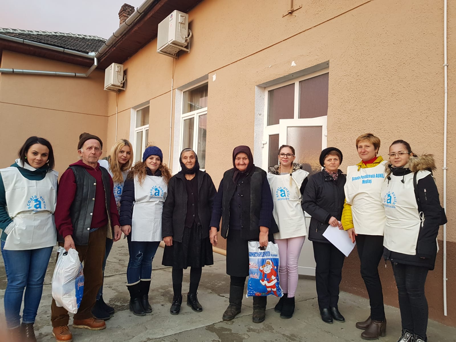 Peste 200 de vârstnici din localități situate în zona de nord a județului Sibiu au avut parte de o surpriză plăcută înainte de Crăciun din partea elevilor Școlii Postliceale Auxilla Mediaș. La inițiativa profesorului Casandra Irimie, elevii s-au mobilizat exemplar și au reușit să le facă o bucurie celor peste 200 de vârstnici din localitățile Șmig, Giacăș, Micăsasa, Țapu, Chesler, Valea Viilor, Motiș, Axente Sever, Agârbiciu, Șoala, Târnava sau Zlagna.