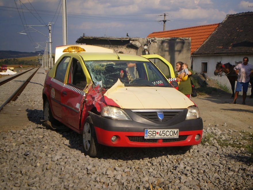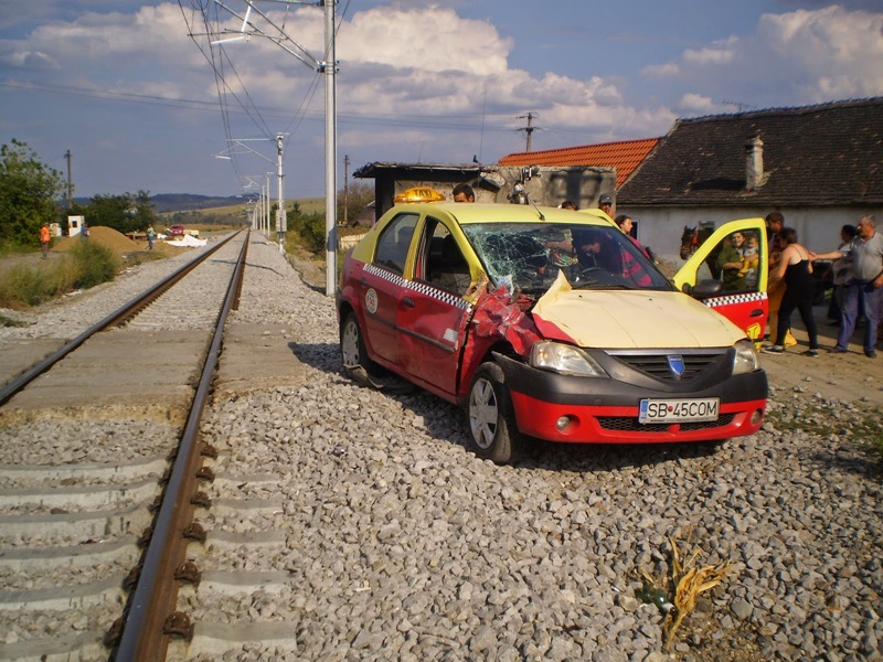 Potrivit IPJ Sibiu, taximetristul nu a respectat semnalele acustice și luminoase aflate în funcțiune în momentul trecerii trenului.