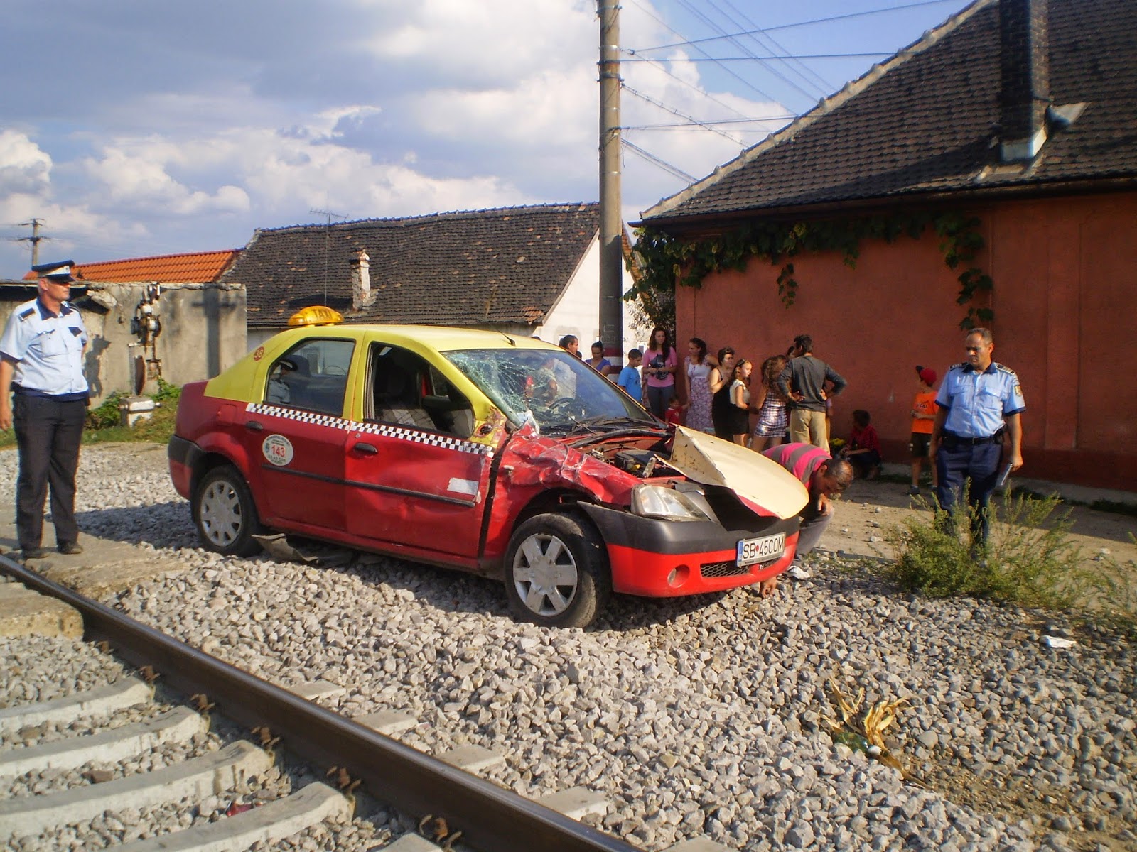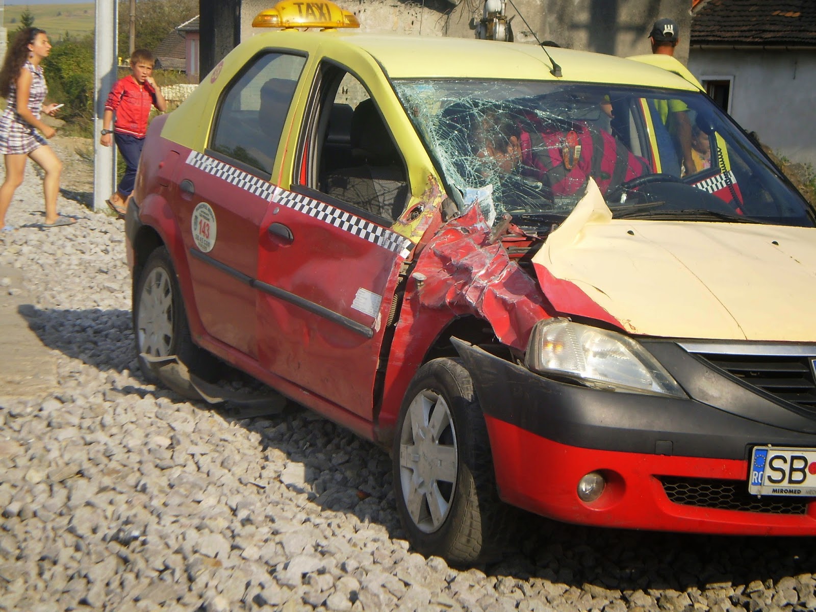 Ca prin minune. Aşa au ocolit o adevărată tragedie 5 persoane, printre care două minore, sâmbătă după-amiaza, după ce autoturismul taxi în care se aflau, a fost lovit de un tren de persoane. S-a întâmlat pe calea ferată la intrarea în Copșa Mică dinspre Mediaș. Taxi-ul a fost lovit în partea din dreapta față de trenul Regio 2566, care circulă pe ruta Sighișoara-Sibiu.