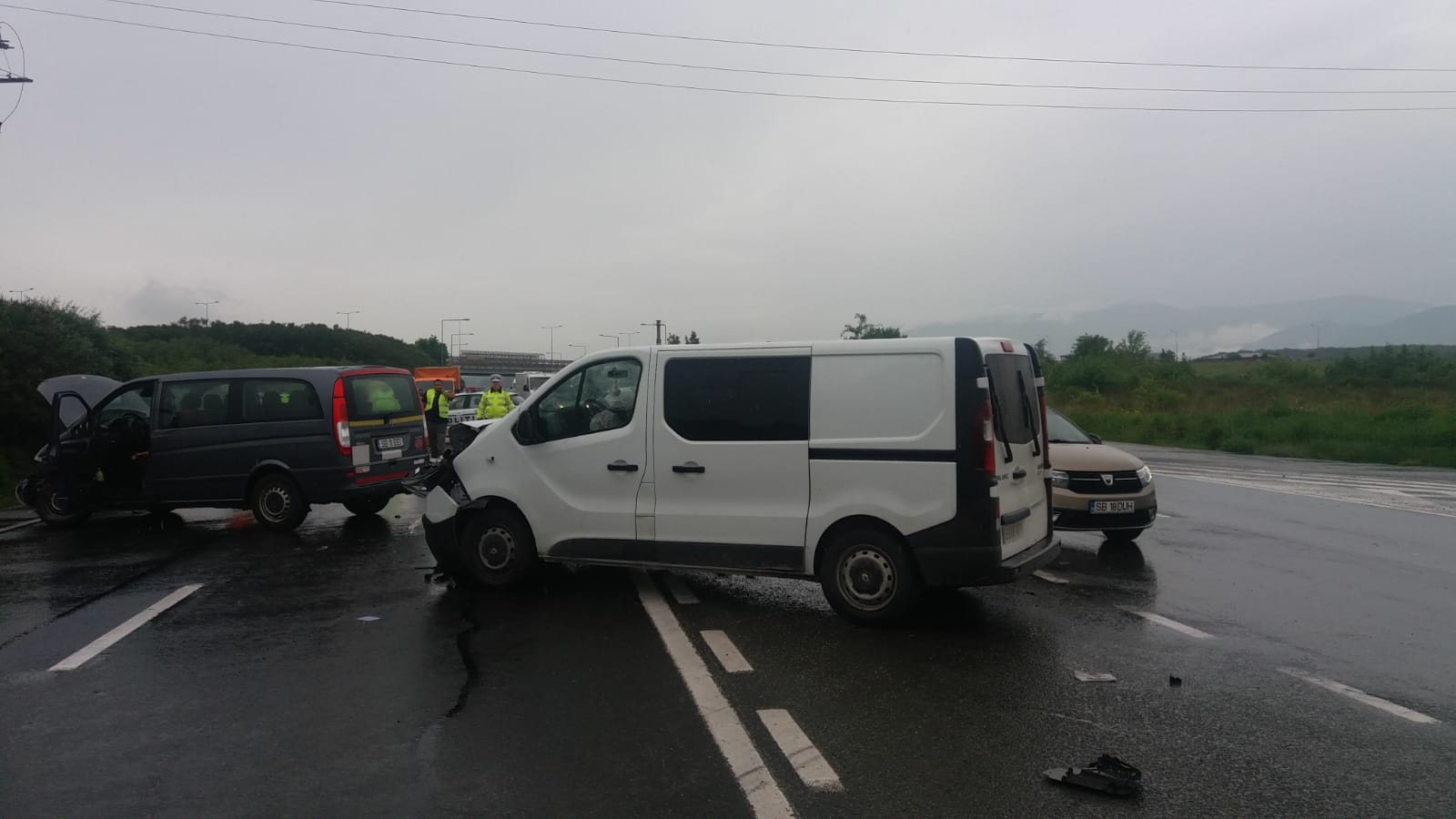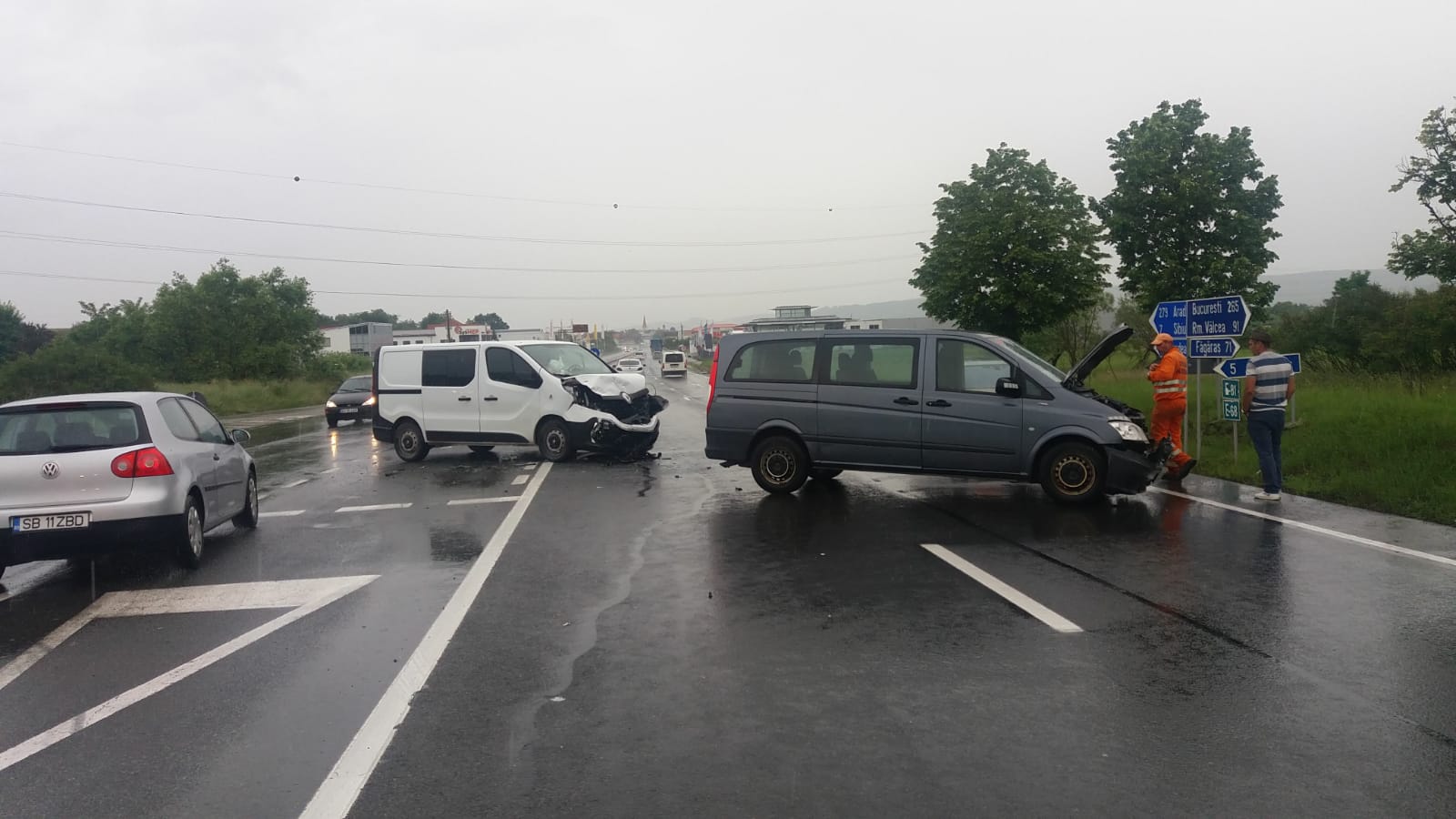 „S-a prods o coliziune între două microbuze pe fondul neacordării de prioritate auto. Unul de capacitate 8+1, celalalt de capacitate5+1. În fiecare dintrele cele două microbuze se aflau șoferul și câte un pasager. Trei persoane au fost transportate la spital, conștiente, cei doi pasageri, o femeie de 32 de ani din Ialomița, un bărbat de 35 de ani din Șelimbăr și șoferul care a produs accidentul rutier, un bărbat în vârstă de 57 de ani din Vâlcea. 57. Șoferul nevinovat are 31 de ani și este din Vaslui”, a precizat purtătorul de cuvânt al IPJ Sibiu, Elena Welter.