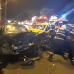 „Șoferul care a pătruns pe contrasens este ranit grav, inconștient. Soferul autoturismului condus regulamentar are 32 de ani și a fost rănit. De asemenea, șoferul autoturismului taxi are 39 de ani și nu a suferit vătămari corporale. Traficul este blocat total”, a declarat Elena Welter, purtătorul de cuvânt al IPJ Sibiu.