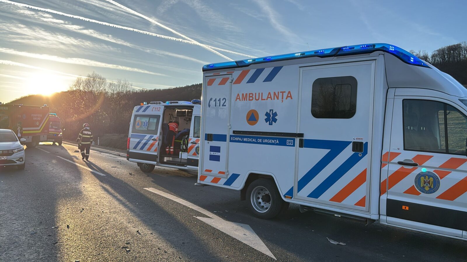 ȘTIRE INIȚIALĂ: Mai multe echipaje de prim ajutor, printre care și autospeciala de transport victime multiple, intervin la un accident rutier în zona localității Bradu.