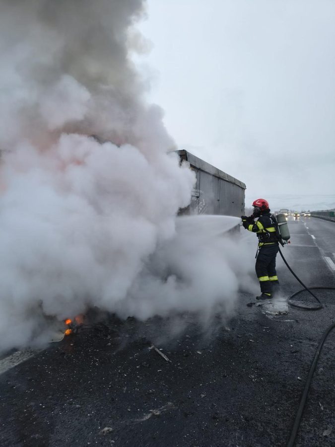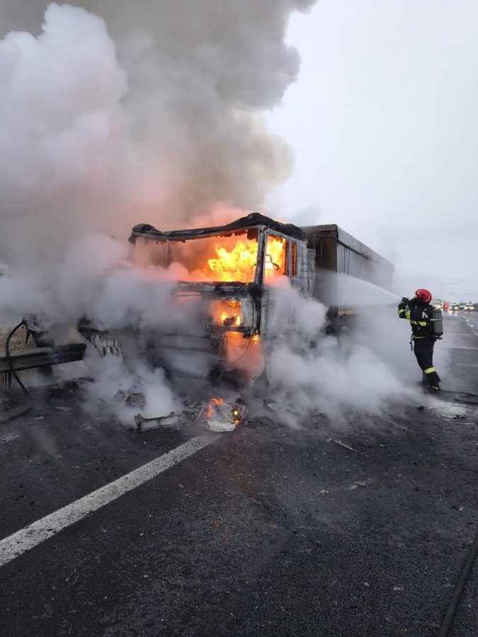 FOTO/ULTIMA ORĂ: TIR cuprins de flăcări pe A1. Traficul este restricționat