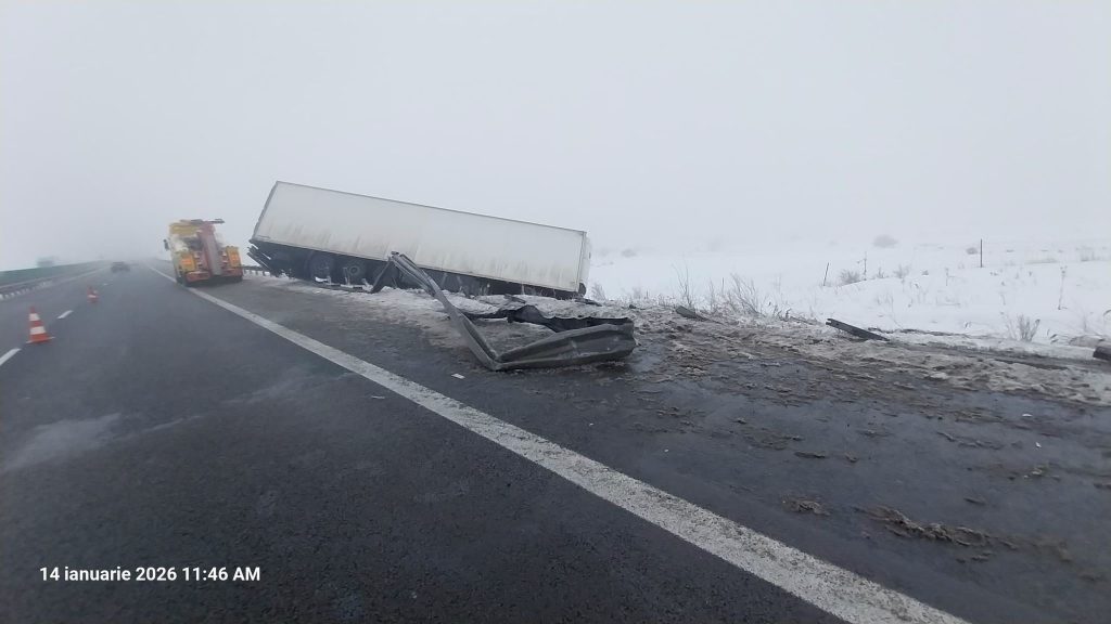 Traficul este restricționat la această oră pe A1, pe sensul Sibiu-Sebeș, unde un TIR s-a răsturnat, anunță DRDP Brașov.