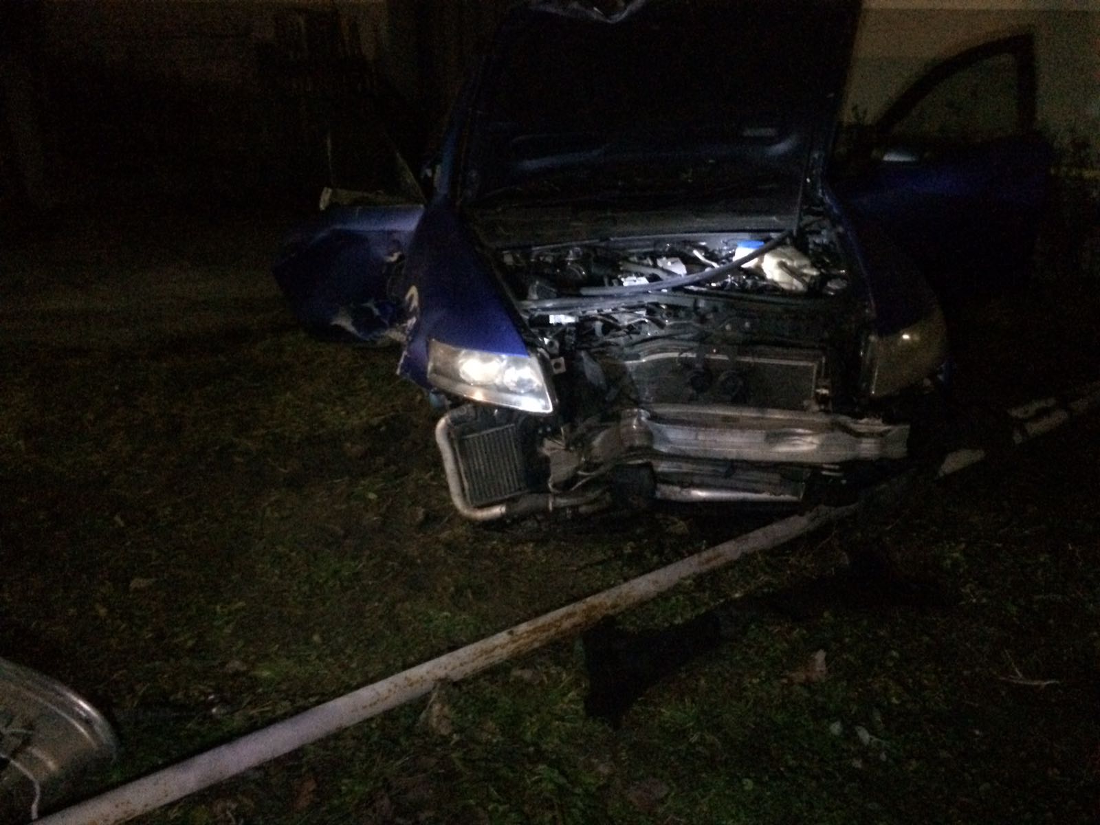 Mașina a fost complet distrusă iar tânărul de 21 de ani a fost rănit și transportat la spital.