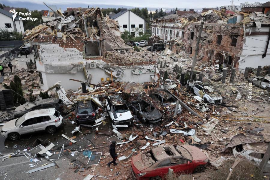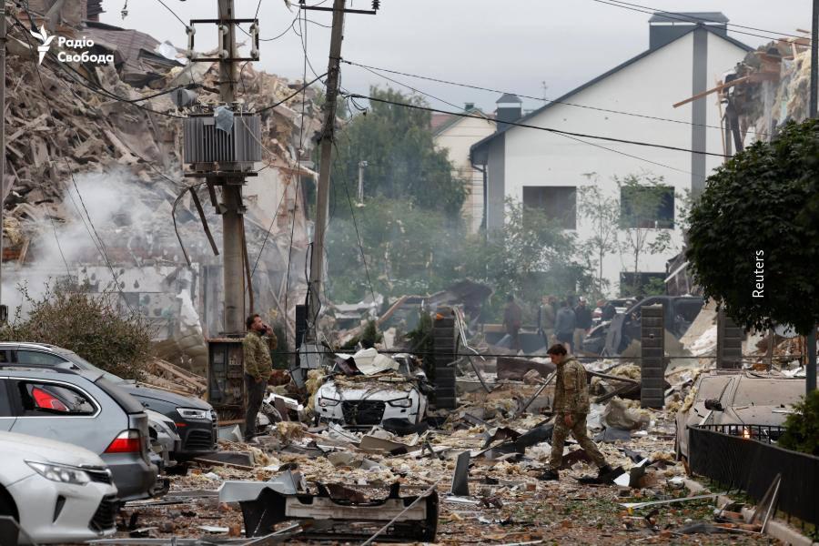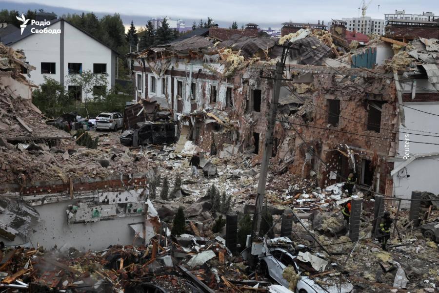 În timp ce, în alte regiuni, resturile de drone doborâte au lovit grădinițe, case și mașini, cel puțin 14 clădiri rezidențiale au fost avariate.
