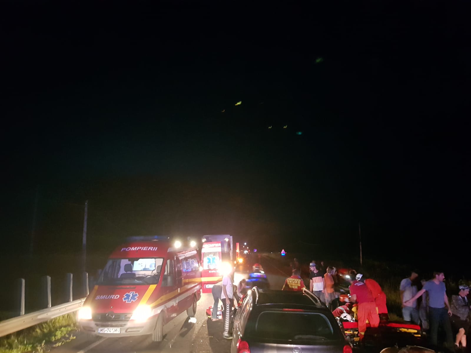 UPDATE ISU Sibiu – „La fața locului echipajele de prim ajutor au evaluat victimele și au acordat ingrijiri medicale urmând apoi transportul la spital. Astfel, la Spitalul de Urgență Mureș o ambulanță a transportat un copil 8 ani în comă profundă, un copil de aproximativ doi ani cu traumatism cranio-celebral, conștient, transportat de un echipaj de terapie intensivă SMURD Sighișoara împreună cu un adult cu escoriații, iar un copil de 7 ani a fost transportat de un echipaj de prim ajutor medical SMURD Sighisoara cu fractură de tibie. Din păcate, din cauza rănilor grave suferite, copilul de 8 ani a decedat. La Compartimentul Primire Urgențe Mediaș a fost transportat de o Ambulanță un copil de 5 ani cu escoriații. La Unitatea de Primire Urgențe Sibiu au fost transportate două persoane. Este vorba despre o femeie de proximativ 33 ani în stare de inconștiență cu o autospecială de prim ajutor medical SMURD Sibiu și un copil 7 ani cu fractură la o mână și dureri lombare transportat cu un echipaj de prim ajutor medical SMURD Mediaș”, a spus Alina Voina, purtătorul de cuvânt al ISU Sibiu.