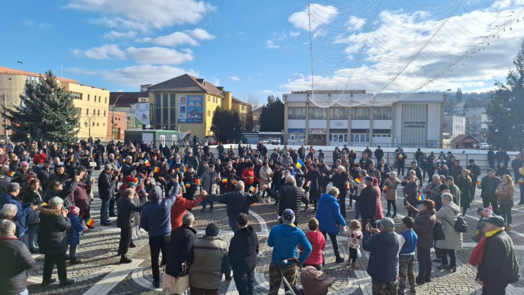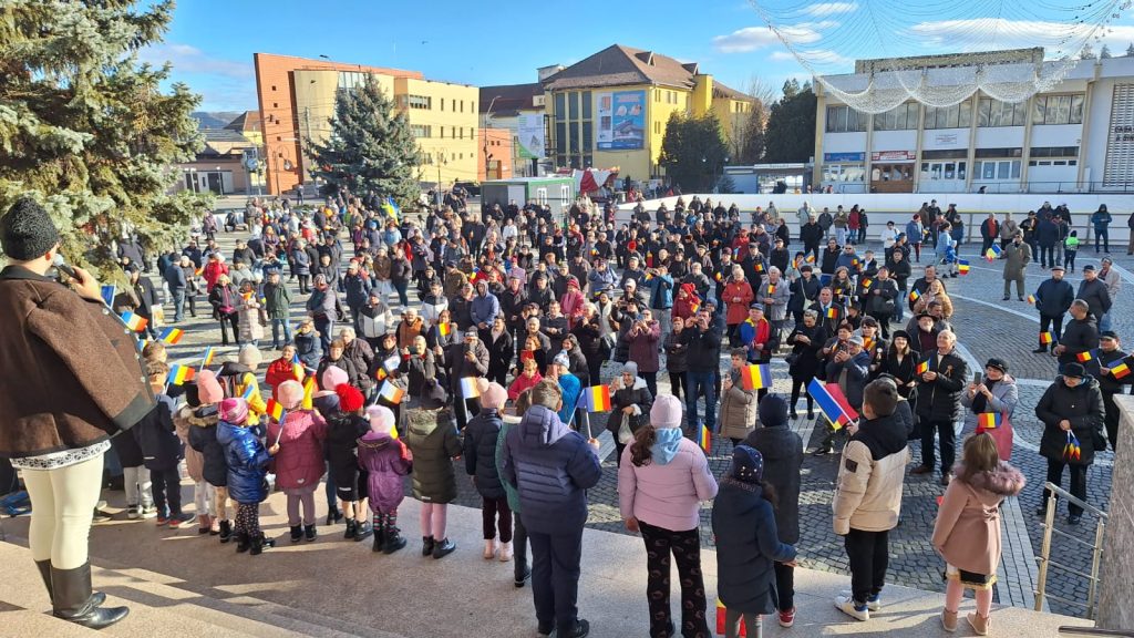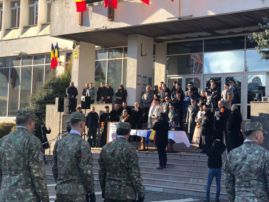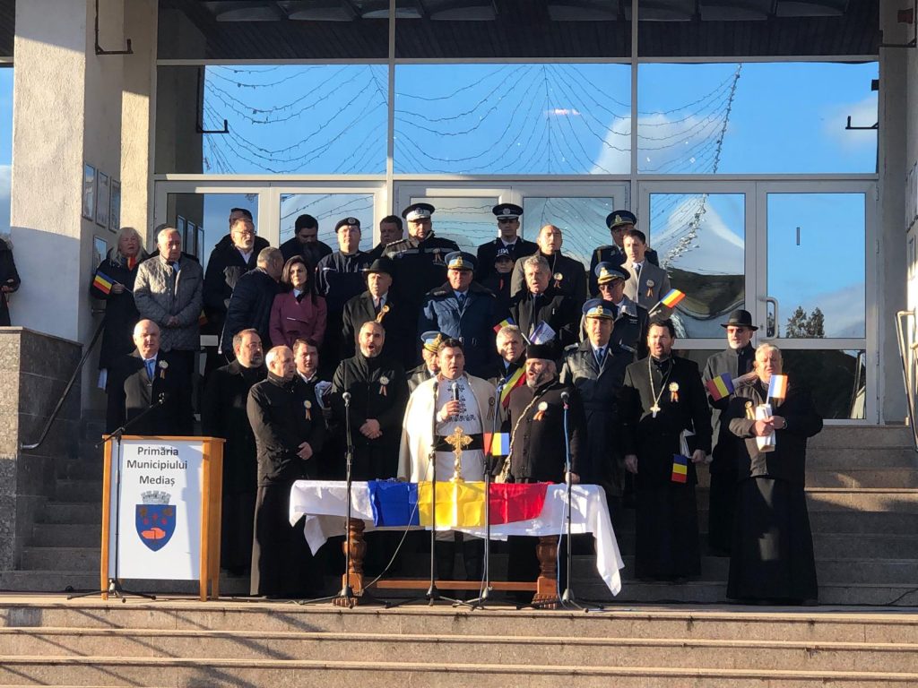De la ora 14, medieșenii prezenți au luat parte în Piața Corneliu Coposu la momente aniversare ocazionate de Ziua Națională a României, respectiv alocuțiuni, oficierea serviciului religios, depuneri de coroane, precum și un ceremonial militar.