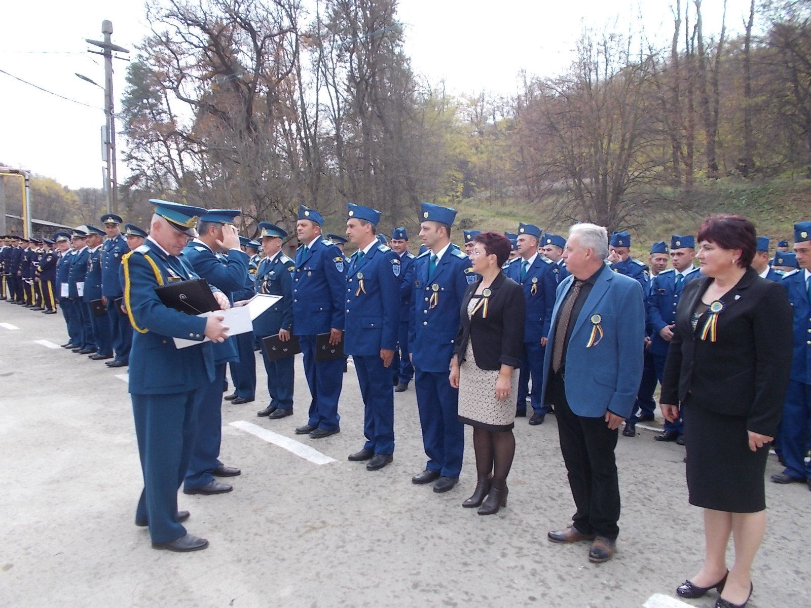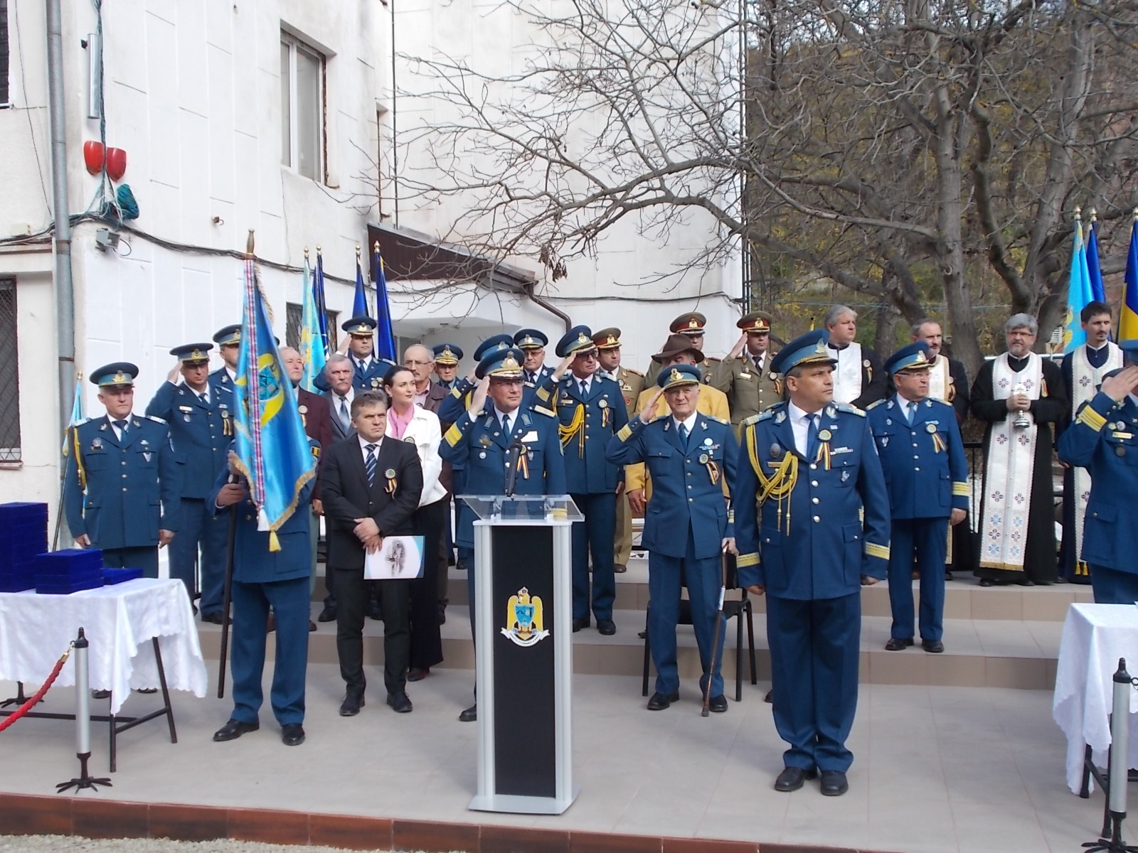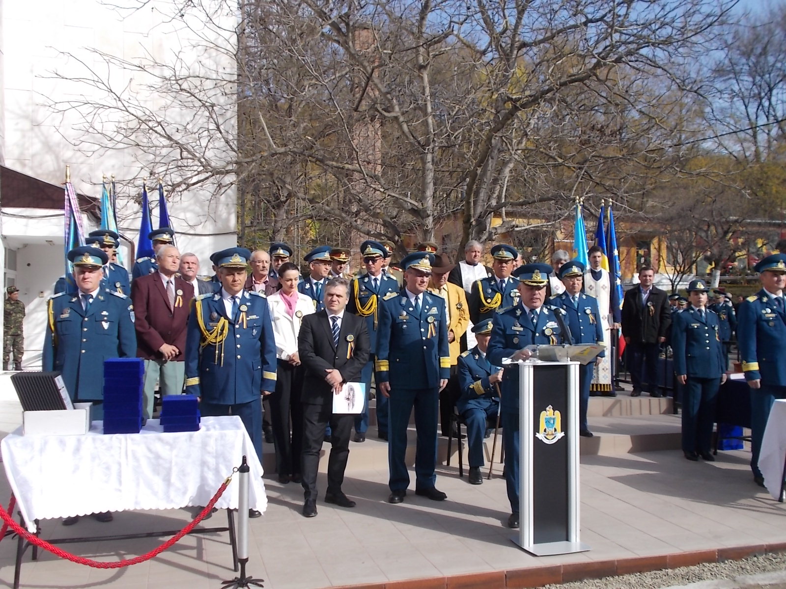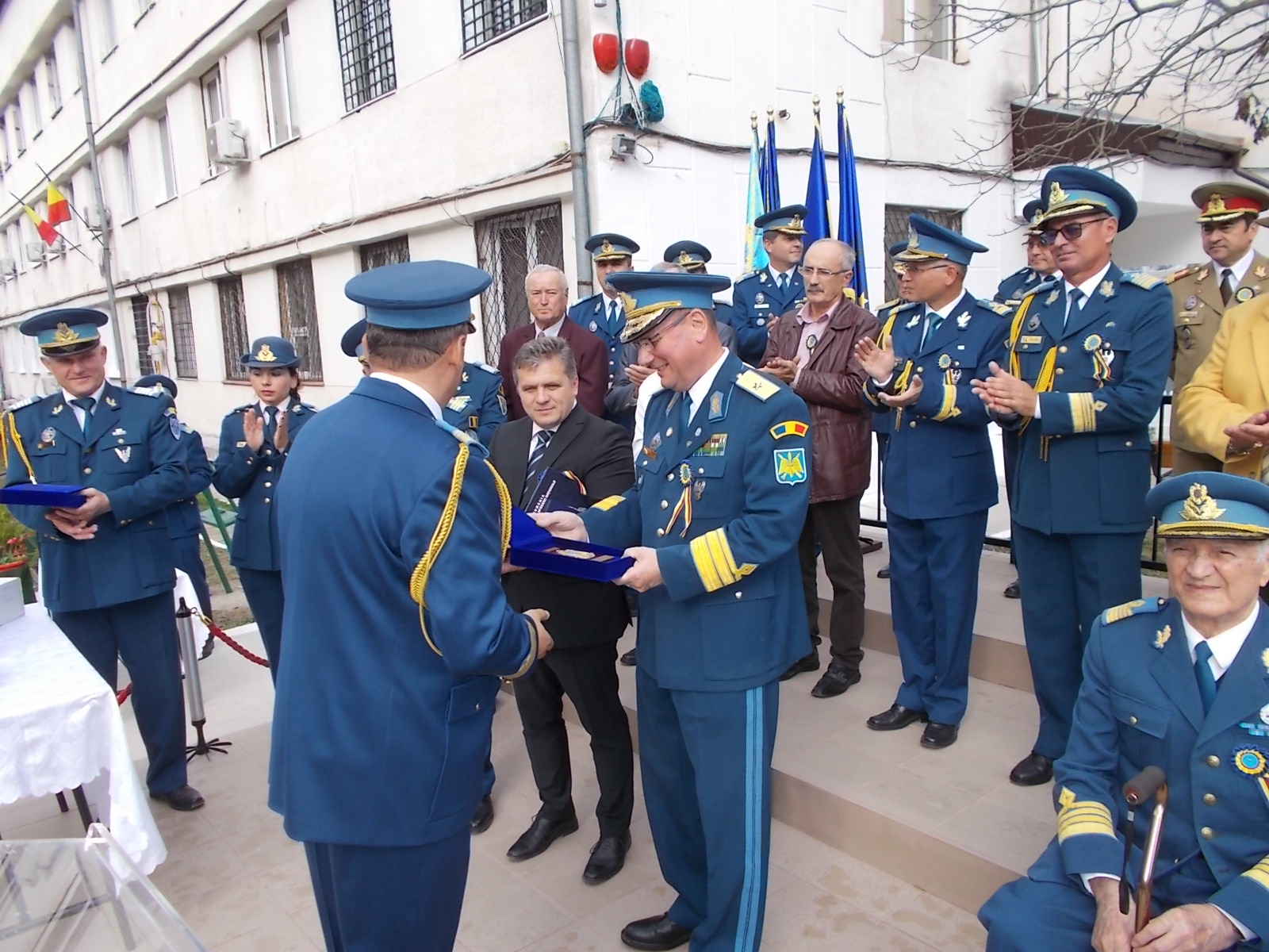 În cadrul ceremonialului a fost conferită emblema de onoare a forțelor aeriere mai multor militari, civili dar și primarului Gheorghe Roman. Printre participanții la eveniment s-a numărat și Comandorul în rezervă Zamfir Spânu, primul commandant al unității. Manifestarea s-a încheiat cu înmânarea unor plachete aniversare personalului militar, contractual și civil, urmată de defilarea unității.